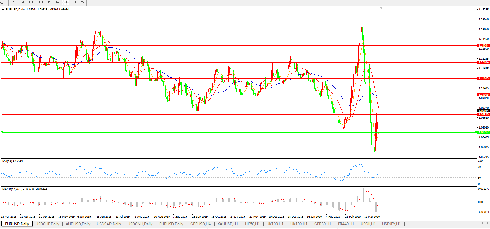 交易策略:1.0770上方看涨,目标1.0880、1.1000