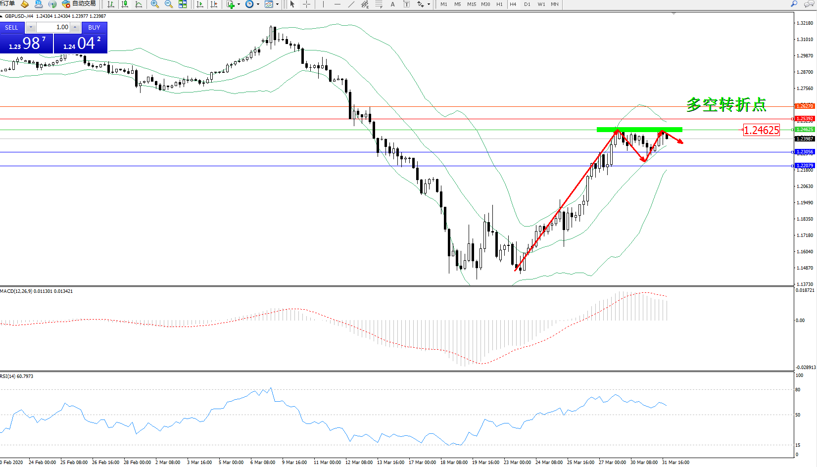 交易策略:1.24625下方看跌,目标1.23056、1.22079