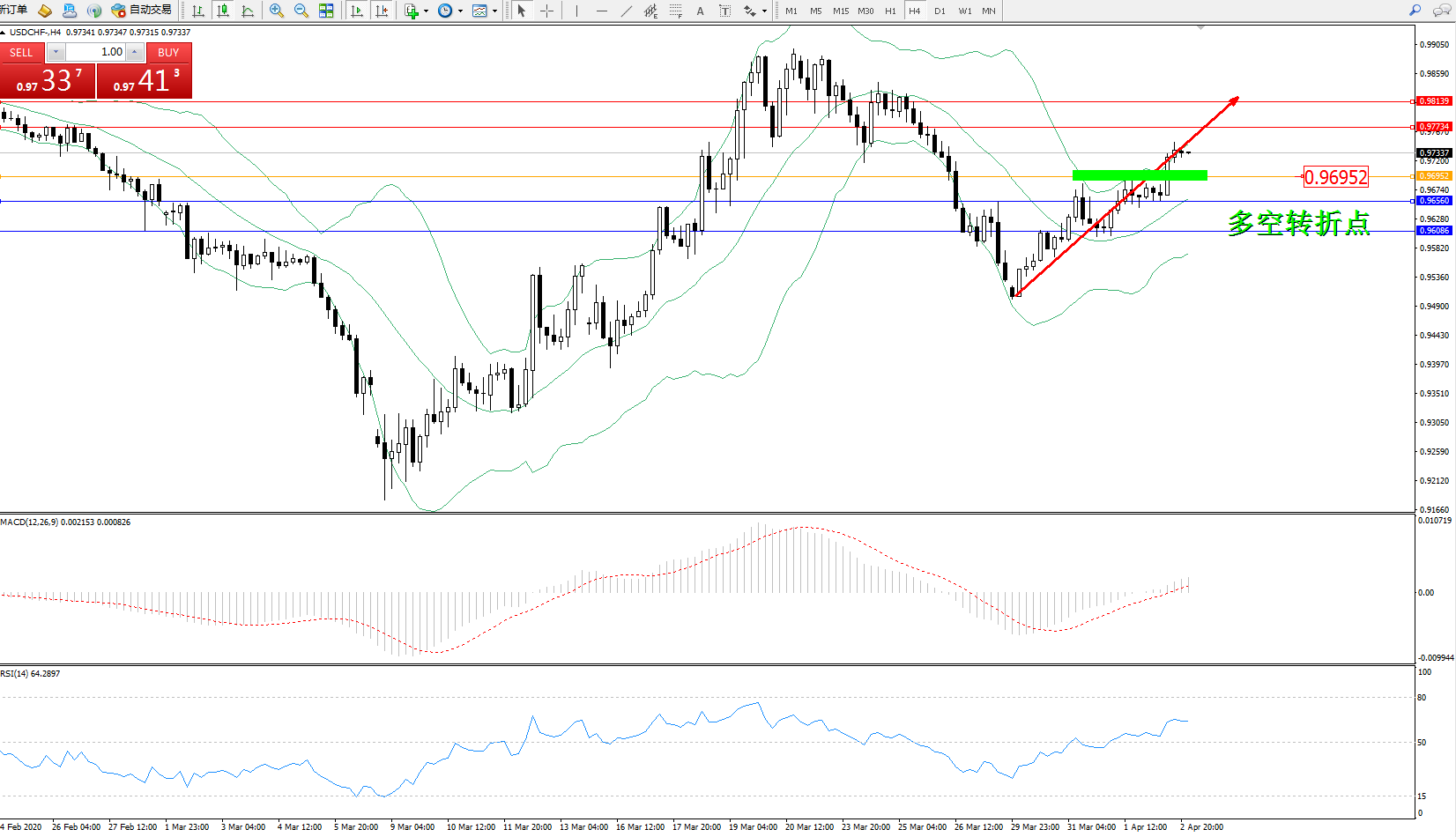 美元兑瑞郎涨0.83%至0.9740.美国3月28日当周初请失业金人数再刷纪录新高,油市的强势走高提振了整体金融市场,但美元再度大涨,重返100大关,美元荒可能卷土重来,然短期瑞郎会震荡,但总体而言,基本面仍然是利好长期瑞郎走势的。无论是宏观经济面的不确定性、地缘政治方面的不确定性还是像此次疫情一样的不确定性。瑞郎都是极佳的避险资产,在出现不确定性的情况下,瑞郎会有比其它资产更好的表现。