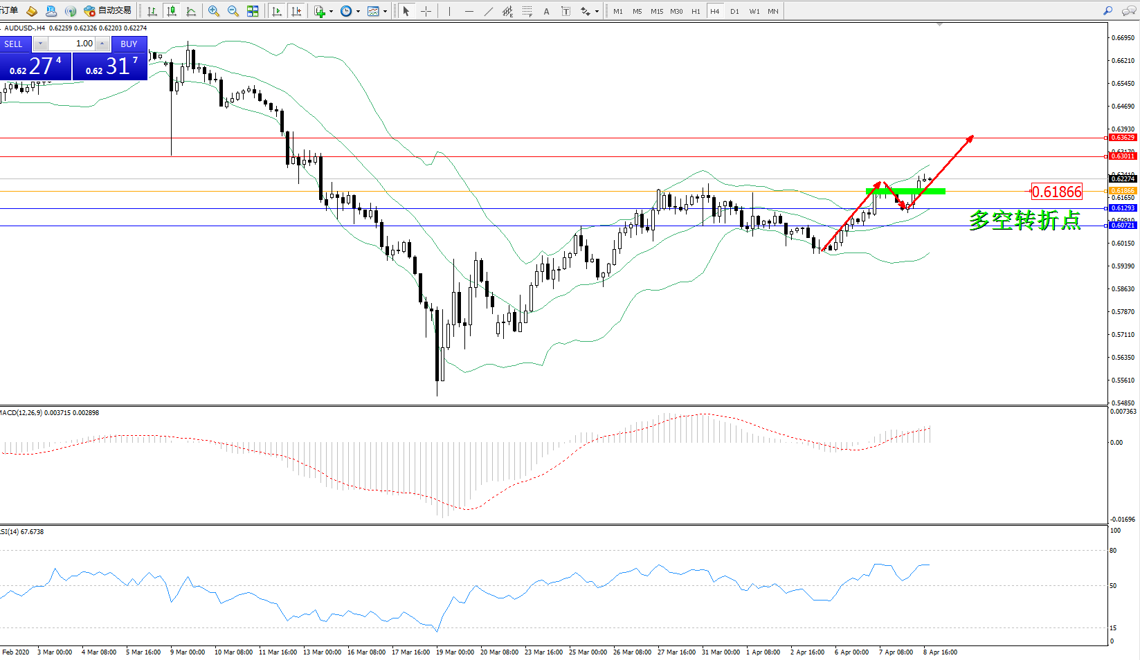 交易策略:0.61866上方看涨,目标1.63011、1.63629
