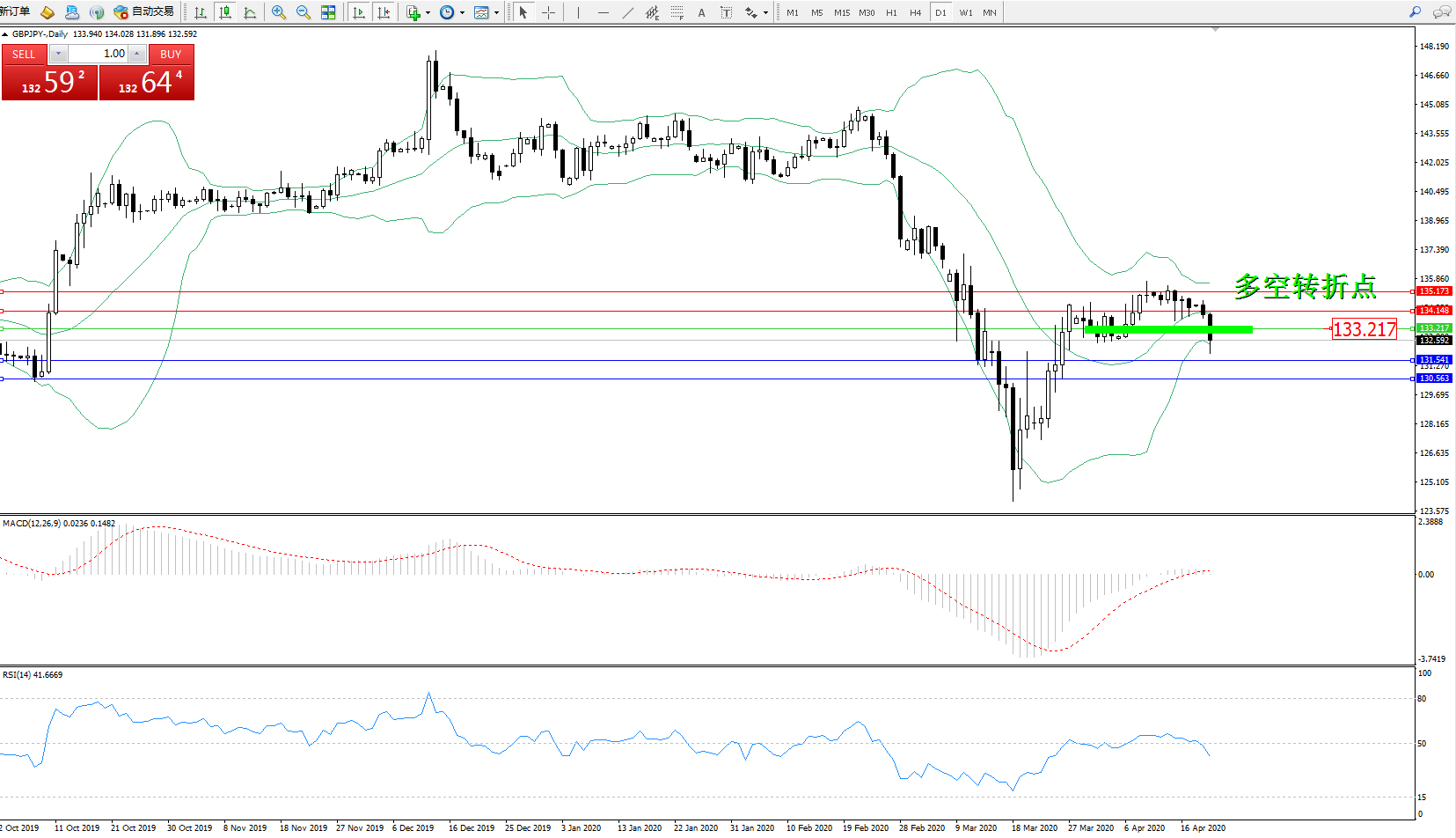 备选策略:133.217上方看涨,目标134.148135.173