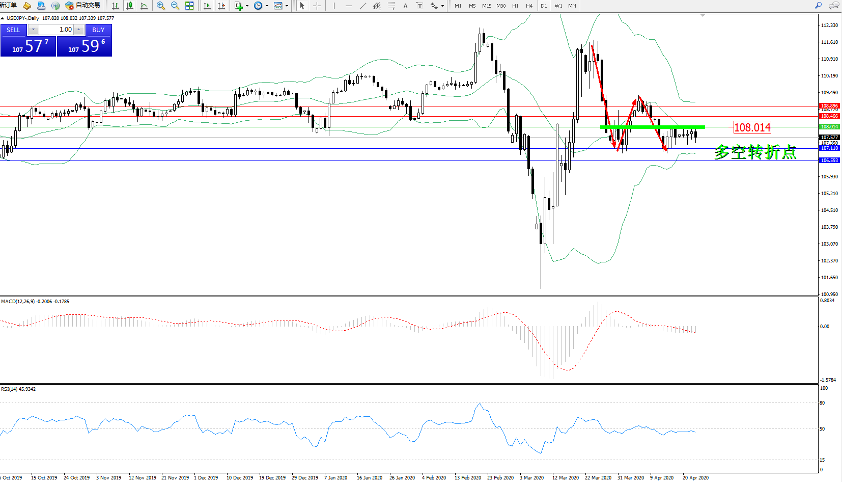 多空转折点:108.014