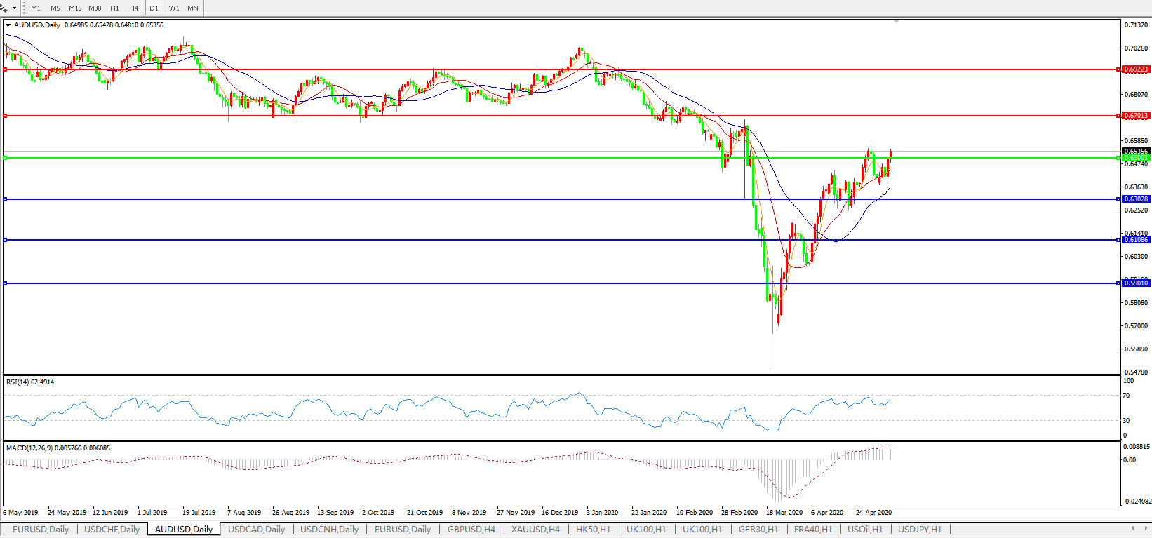 交易策略:0.6500上方看涨,目标0.6700、0.6920