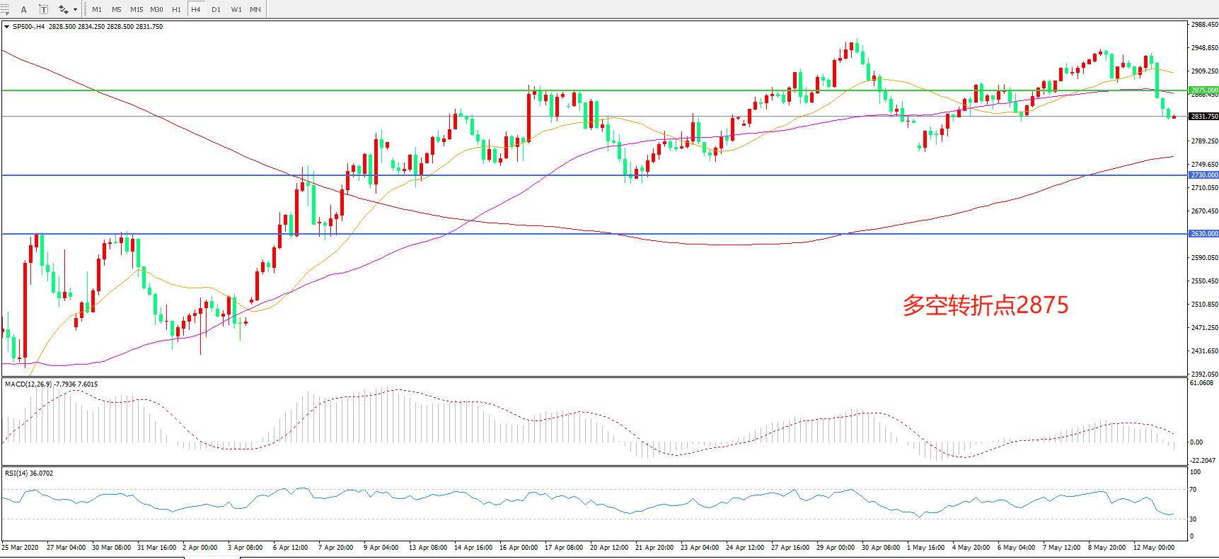 多空转折点:2875.00