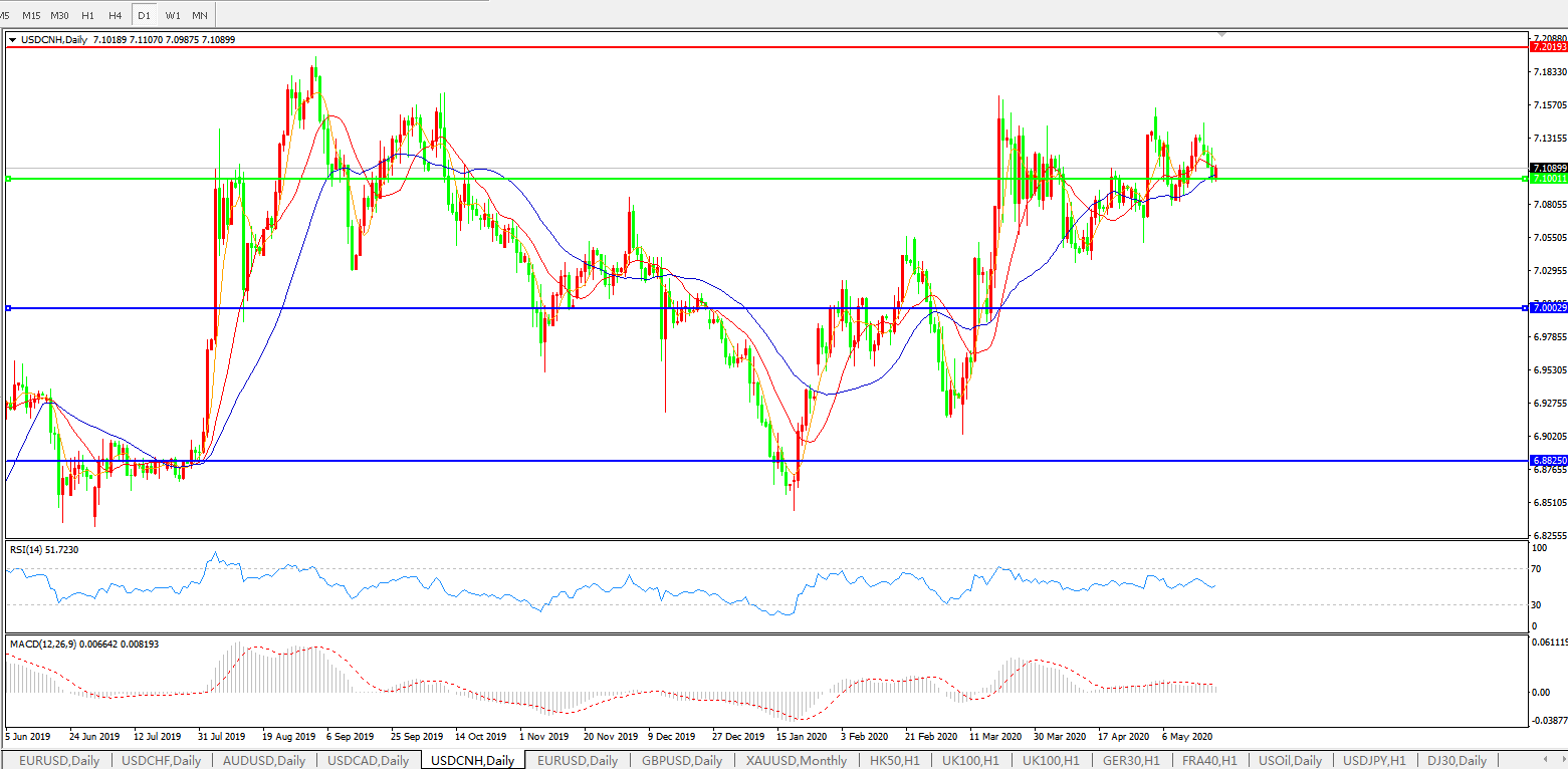 交易策略: 在7.1000之上,看涨,目标价位为7.2000,然后为7.3000。