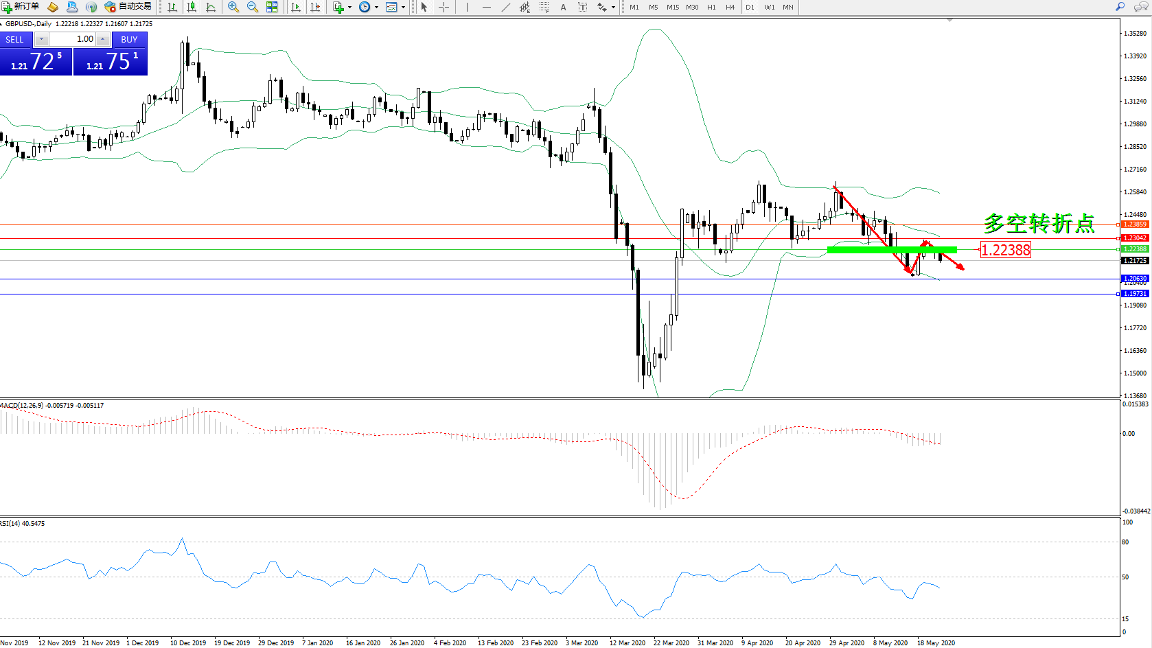 交易策略:1.22388下方看跌,目标1.20630、1.19731
