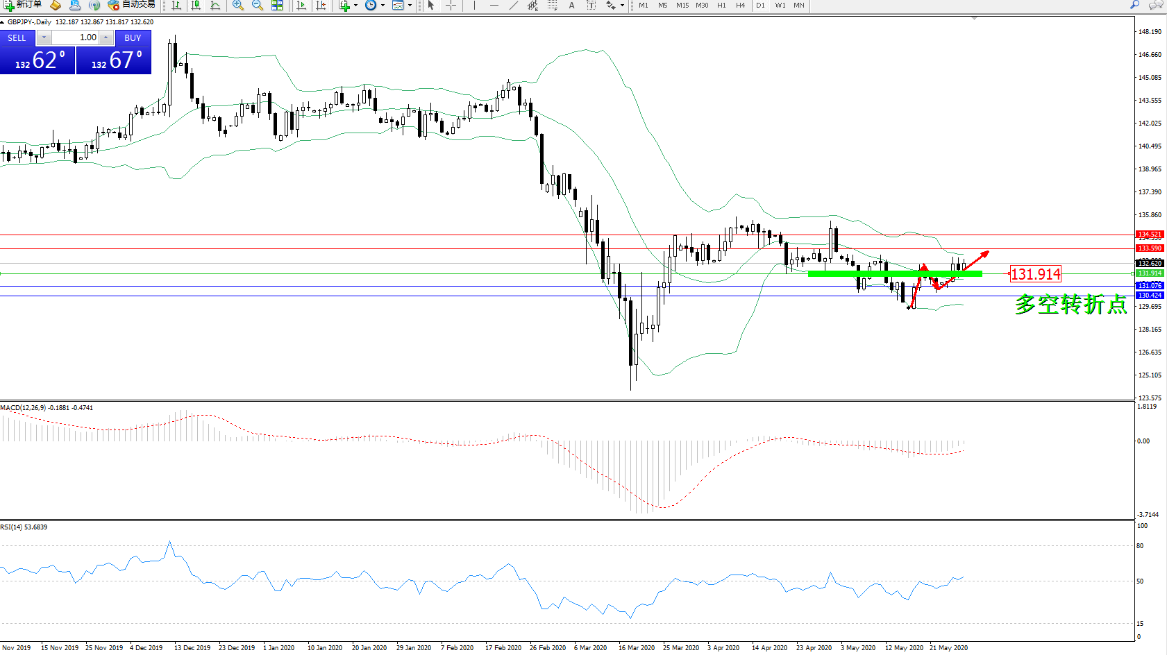 英镑兑日元上行至132.683附近徘徊,有报导称英退磋商陷入僵局;英国首相约翰逊概述了英国重新开放指引的细节。随着封锁解除,可能会出现一些复苏,认为复苏相对缓慢存在风险,英国可能会陷入低通胀陷阱,失业率可能上升至9%左右,过于宽松造成的负面影响较低,对英国央行来说,放松太多比放松太少更安全,风险在于复苏相对缓慢,反映出持续高水平的不确定性和风险溢价,经济将继续面临英国脱欧和全球贸易政策的其他重大不确定性,除了上周英国央行行长贝利告诉议会的以外,对于负利率没有什么要补充的,负利率需要仔细评估,不排除负利率的可能性,但也不一定会支持。