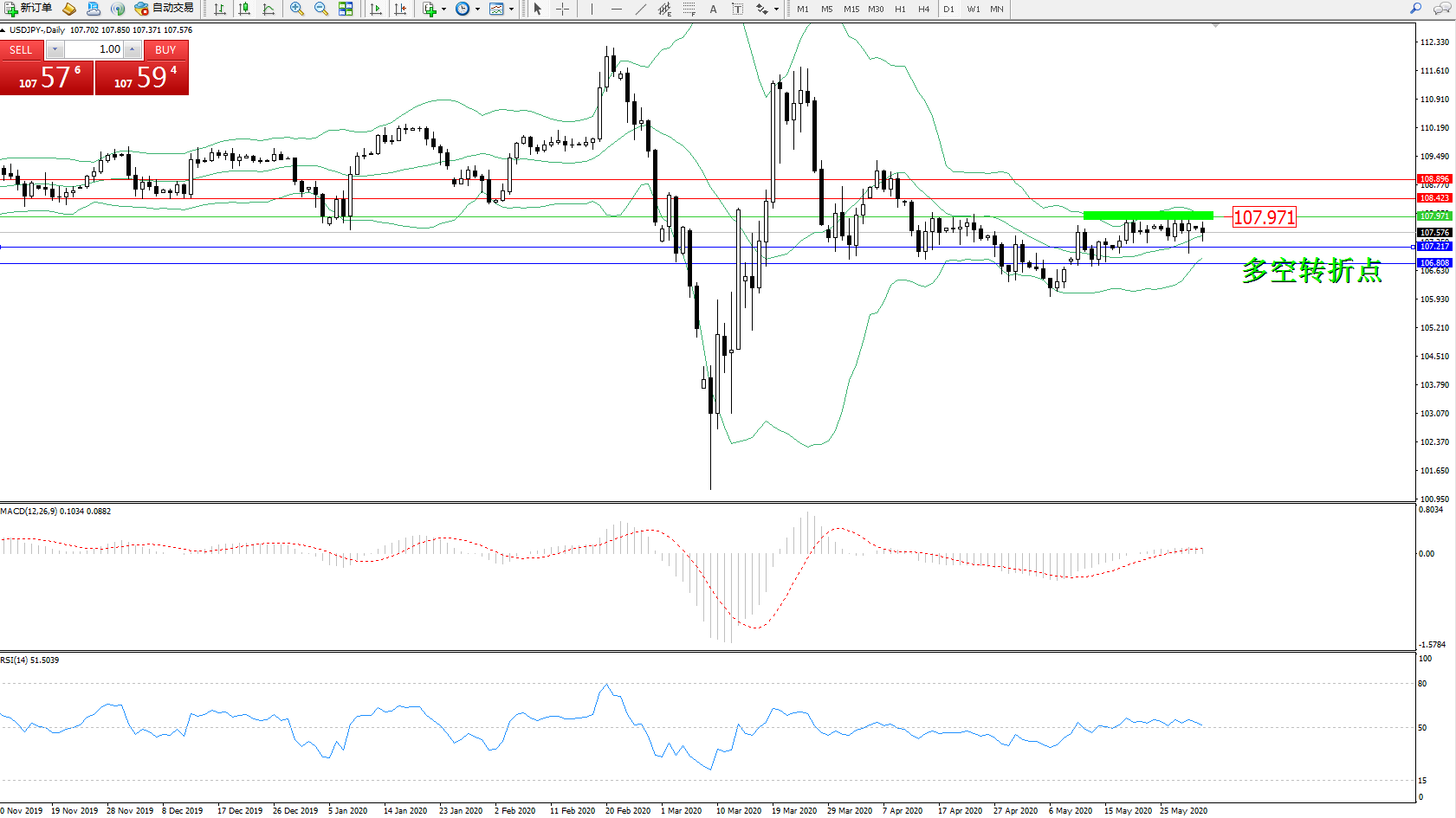 美元兑日元跌0.22%至107.59,继续维持窄幅震荡状态,因近期美日央行政策有限,而风险偏好情绪也此起彼伏,充满不确定性,一方面,全球复工复产加快,股市走高,另一方面,国际地缘政治风险不减,支撑日元避险需求。市场对美国国内局势的担忧也影响了市场情绪,再加上还有贸易问题。近几日美国国内爆发了大规模抗议,为市场带来了极大的不确定性。受到疫情对经济的影响,全球各国央行都采取了极为宽松的货币政策,各国政府也都采用了各种刺激项目。