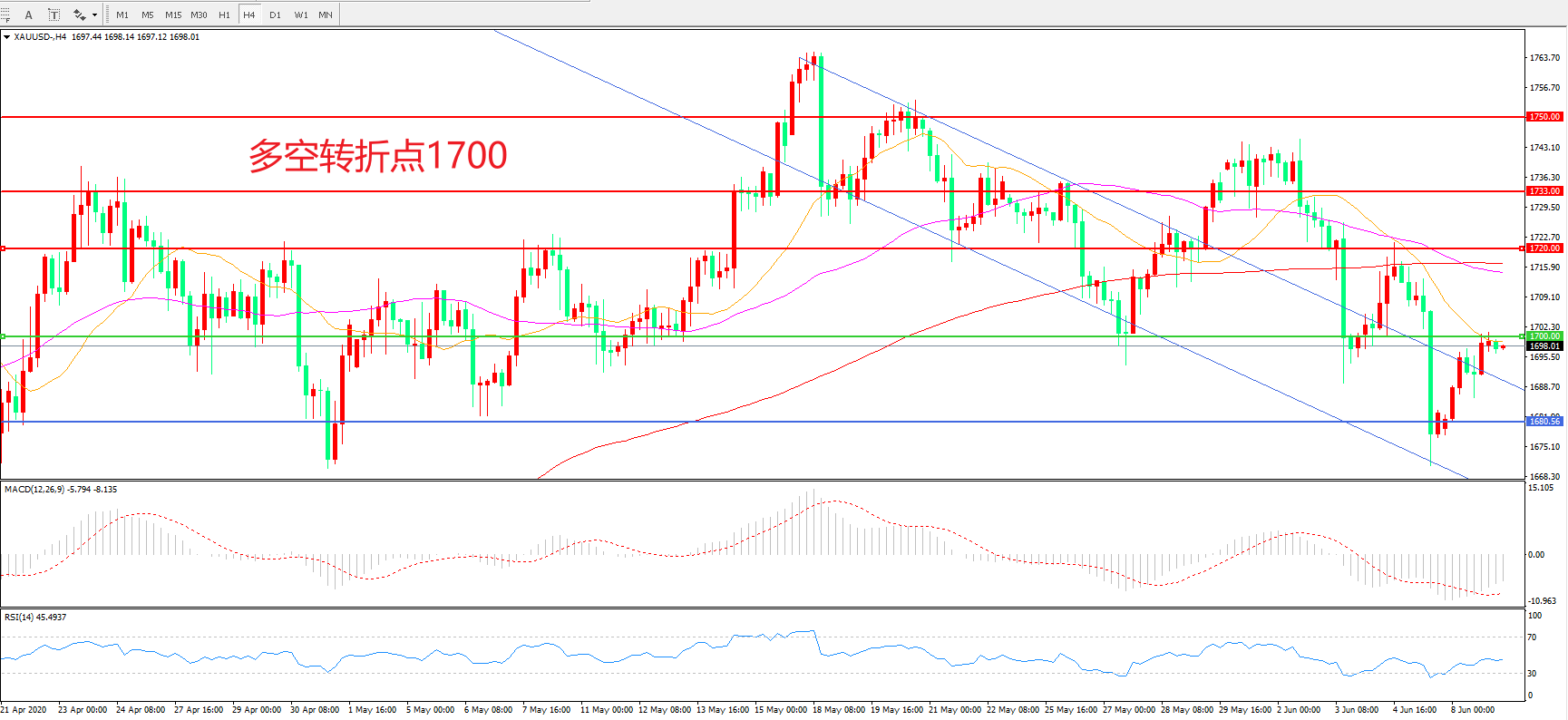交易策略: 在1700.00之下看跌,目标1680.00   1665.00