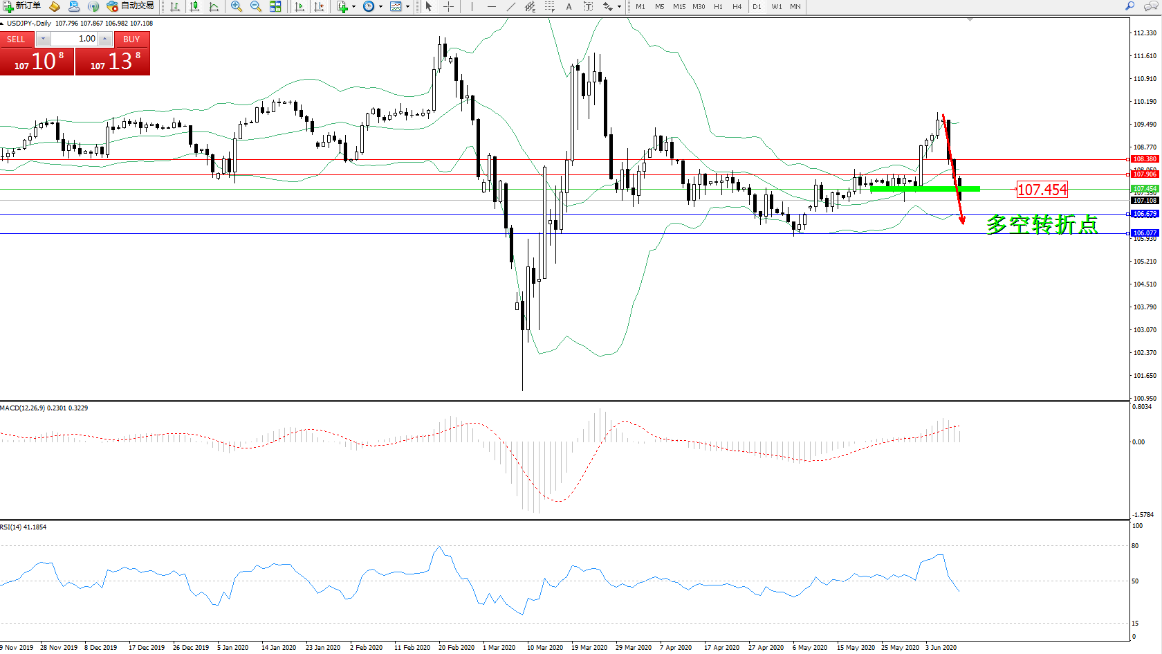 美元兑日元亦跌至三周低点106.99,因美国收益率下降;一个月风险偏斜转向一个月最大,日元认购期权需求增加。非美货币纷纷走高,美联储维持利率决议不变美联储点阵图显示,维持低利率直至2022年底,这在一定程度上给美元带来压力。由于美国经济已经度过危机期,刚刚进入恢复期,因此美联储对收益率曲线控制措施可以再等待观望一下,市场过于乐观,正在向下调整,但这是逢低买进美元的良机。同时,日本4月核心机械订单额大幅下降,超过各界预期,显示经济复苏仍缓慢,日元避险需求也上升。日本4月核心机械订单额大幅下降,超过各界预期,显示经济复苏仍缓慢,日元避险需求也上升。