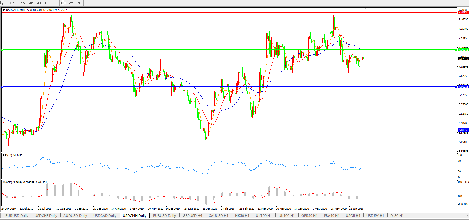 美元兑人民币USDCNH    日线图: