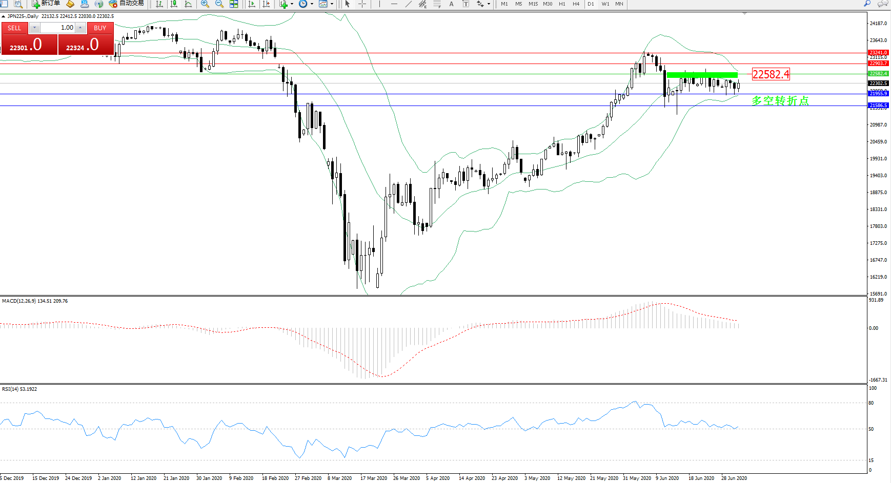 日经225指数73日(周五)收盘上涨127.04点,涨幅0.57%,报22273.00点。因美国独立日假期,美国纽约证券交易日周五(73)休市一天。亚洲股市继续走高,这令投资者保持对风险资产押注,美国就业市场依旧严峻,美国经济复苏可能会受阻,因新增病例数激增促使多个州暂缓实施重启计划,某些州甚至重新实施封锁措施。日本金融厅厅长表示,对私人金融机构来说,现在的首要任务是通过支持企业的资金,给它们喘息的空间。日本地区银行必须改革其商业模式这一事实没有改变。