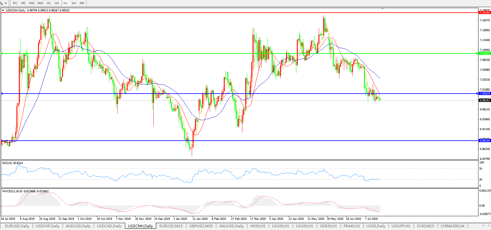 美元兑人民币USDCNH 日线图: