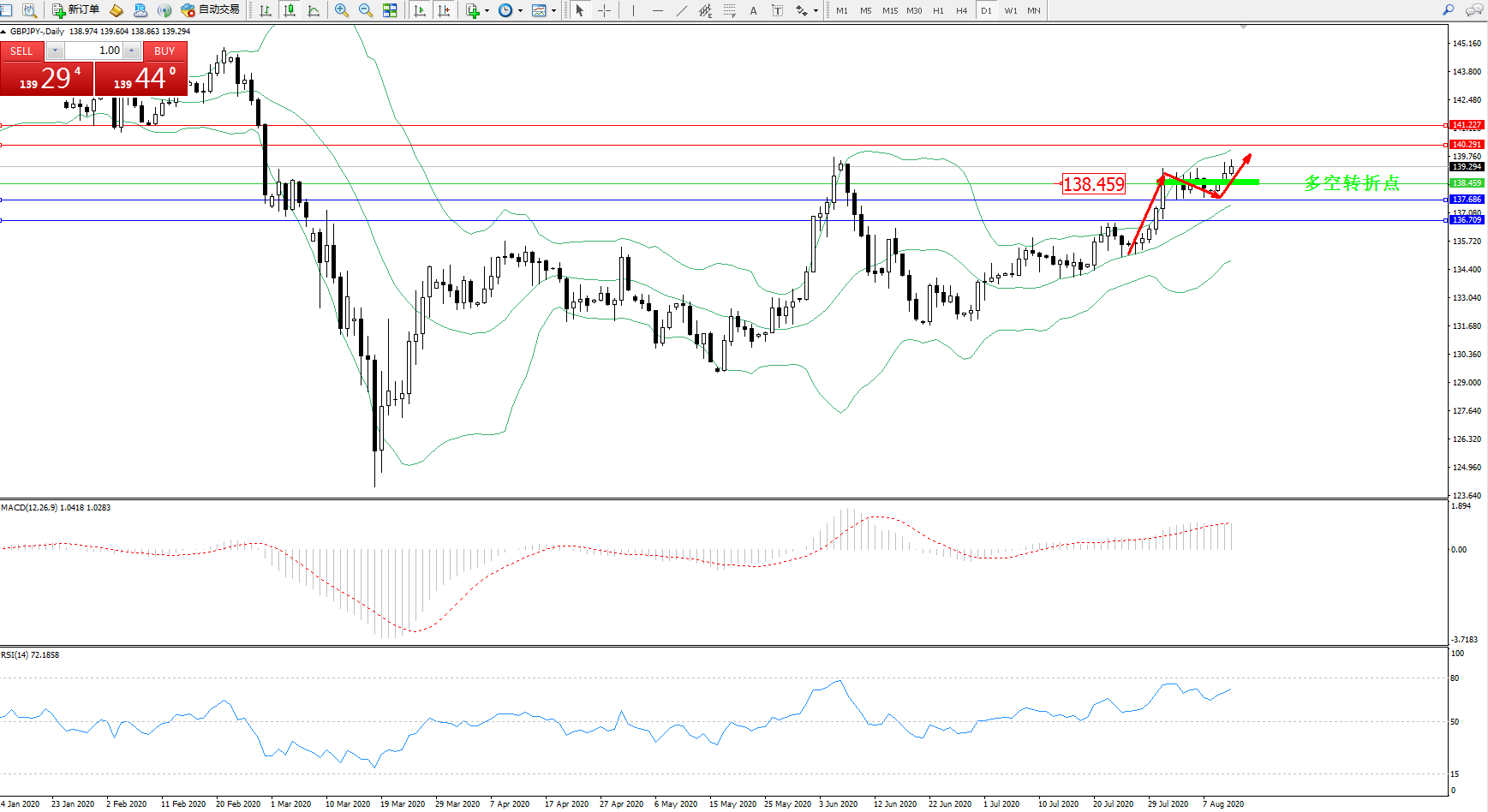 交易策略:138.459上方看涨,目标140.291、141.227