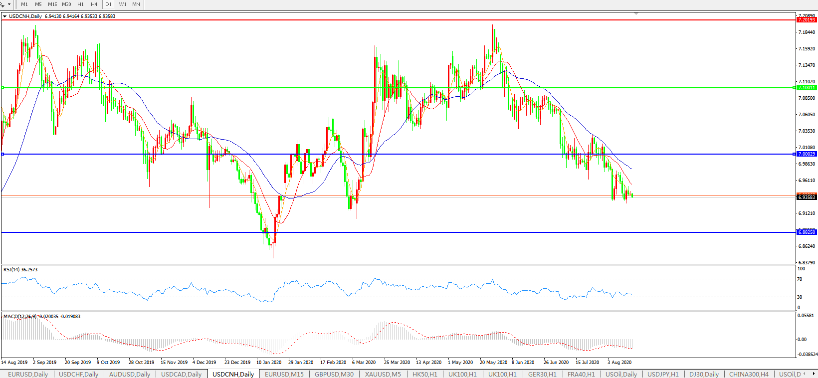 人民币兑美元即期周五收盘缩量小跌,日内有效波幅仍不大,中间价则小升至逾五个月新高;市场仍预期美国两党就刺激计划能达成协议,这有利于美元短期企稳,不过中期美元仍存较大的调整空间;中国7月零售销售意外连续第七个月下滑,工业生产也逊于预期; 全球汇市方面,美元周五持稳,因美国公债收益率跳涨,且中国经济数据不佳拖累市场人气,止住全球储备货币美元的跌势;美元指数本周以来仍跌0.2%,但似乎已遏制住之前导致其较3月高位下跌约9.5%的这轮跌势; 德商银行最新表示,当前美元的表现已经反应了,美国两党最终会就一揽子财政计划达成共识的预期。