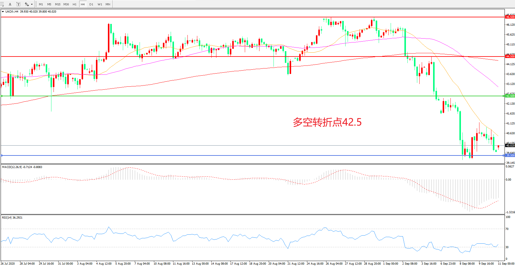 交易策略: 在42.50之下看跌,目标39.50 37.00