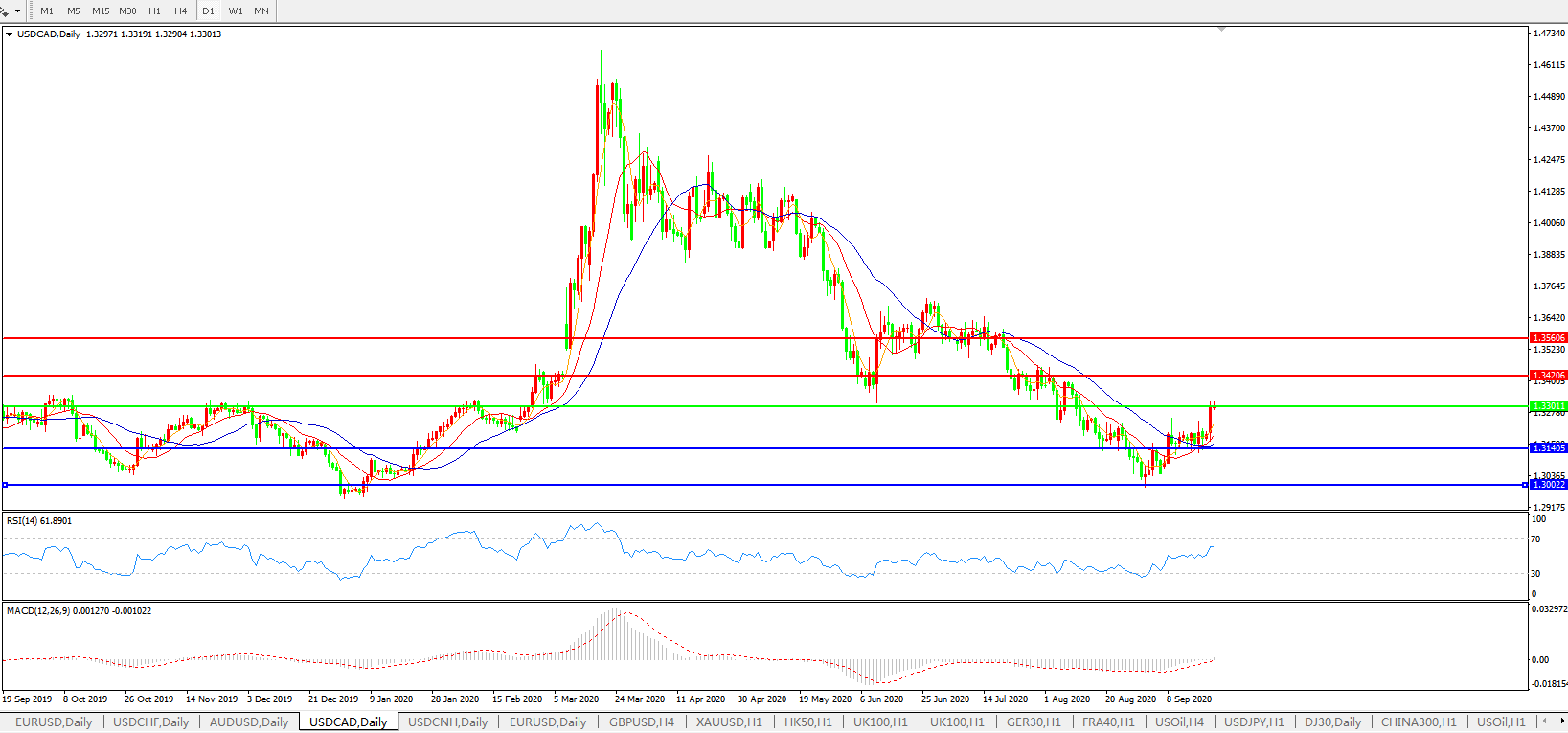 纽约时段盘初,美元兑加元震荡走高,汇价触及五周新高,最高升至1.3263。美元兑加元上涨,主要是受到美元走强支撑;FXStreet的分析师Joseph Trevisani称,市场正在等待更多上涨的催化剂,疫情大流行的不确定性,给商品货币加元带来压力。到目前为止,还没有足够的证据表明美国经济已经从疫情危机中恢复过来,从而产生了强劲的美元需求。美联储明显的谨慎态度增强了这种市场对疫情的警惕性;Joseph Trevisani称,美国经济的一个主要方面仍然是劳动力市场,尽管劳工部报告中的薪资头寸得到了强劲回报,但劳动力市场仍继续每周减少近一百万个工作。如果劳动力市场数字继续减少,那么将会限制美元兑加元进一步上涨;华侨银行的分析师Terence Wu预计,美元兑加元将在1.3120-1.3250的较大范围内盘整。该行分析师认为在1.3150至1.3200区间美元兑加元相对较为稳定。疲软的零售印刷品给加元带来压力,但前端收益率差异对加元的支持正在扩大。总体而言,不同的驱动因素将加元朝相反的方向拉,使得该货币对仍然在更宽的1.3120和1.3250范围内进行巩固