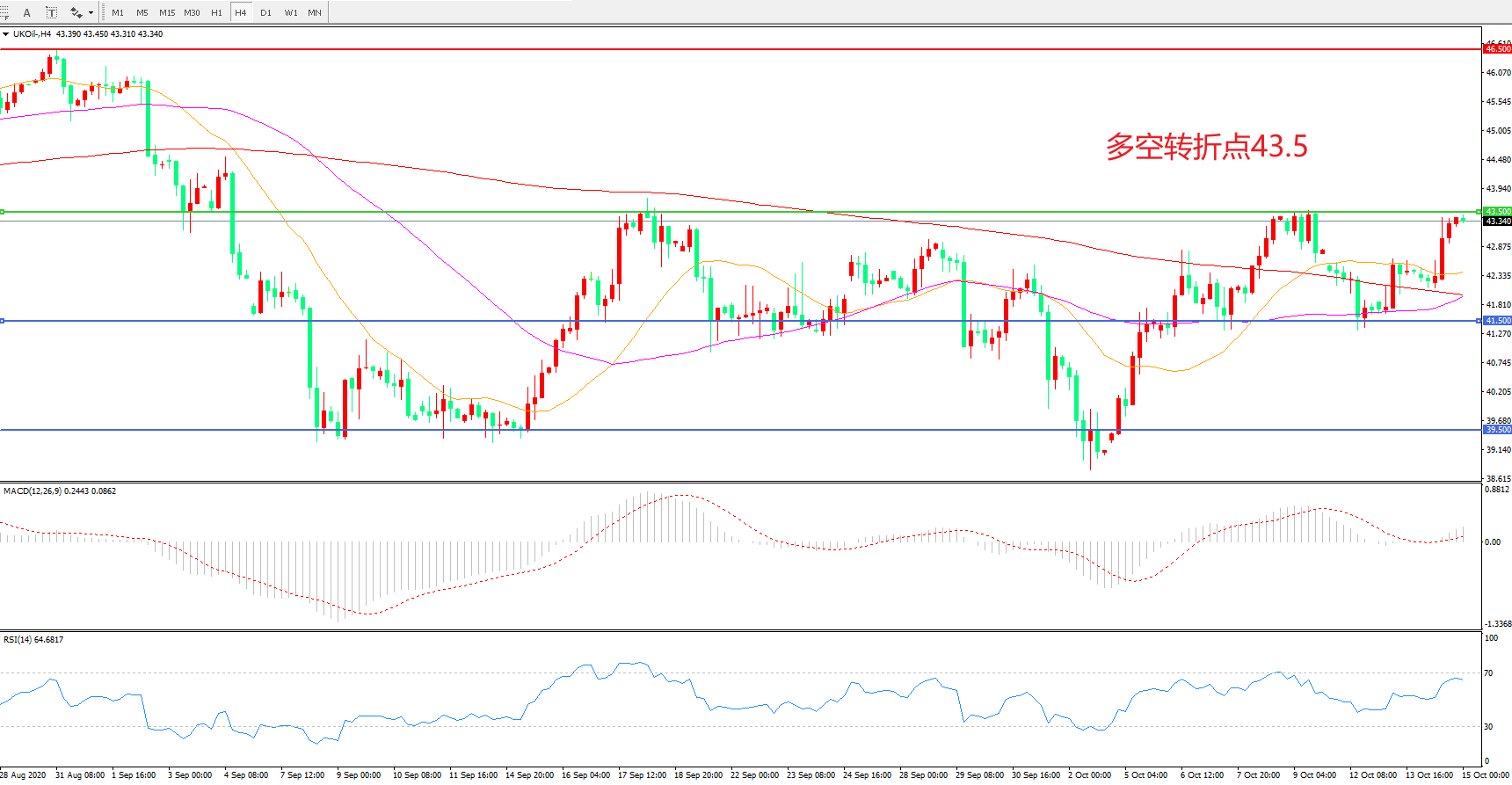 多空转折点:43.50