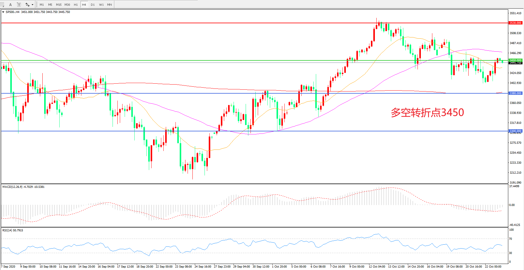 周四(10月22日),美股再现动荡,众议院议长佩洛西表示,“差不多即将与白宫达成新一轮财政刺激协议,针对新冠疫情达成救助协议存在紧迫性”,这一言论直接推动美股止跌转涨,但佩洛西随即补充称,虽然距离写成一版法案并通过国会投票“还有一段距离”,标普500延续高位震荡,收报3453.75点。