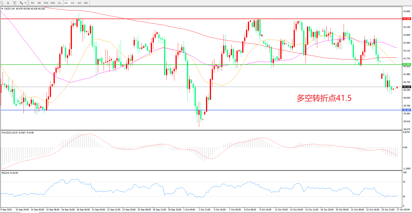 交易策略:  在41.50之下看跌,目标39.50      37.00
