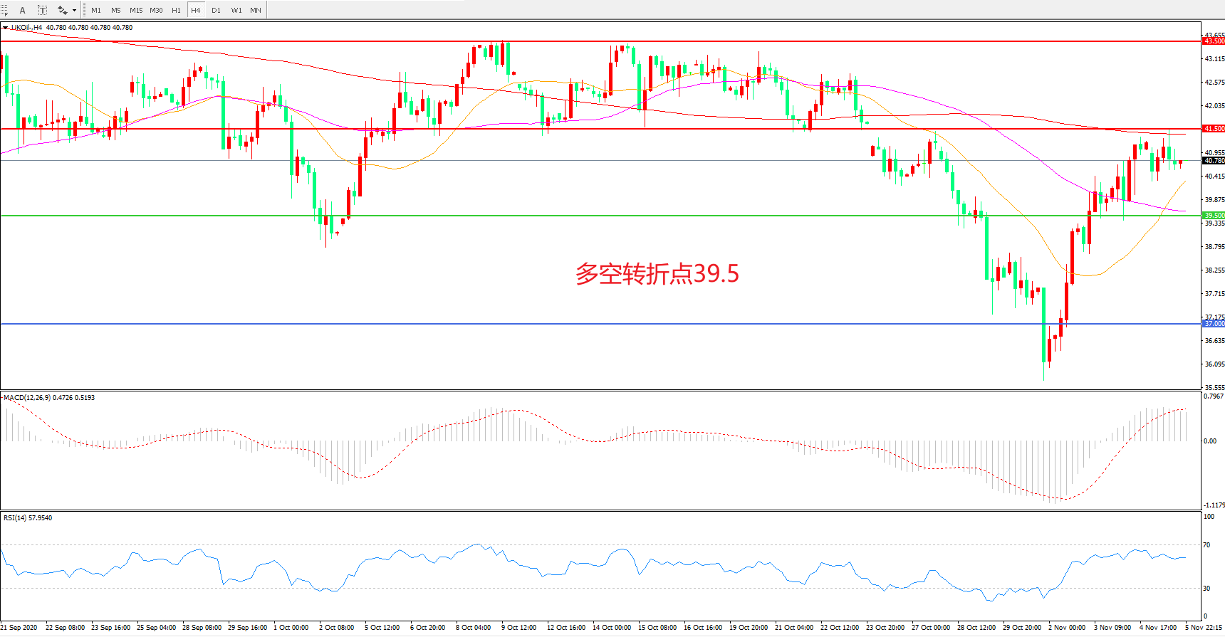 交易策略: 在39.50 之上看涨,目标41.50 43.50