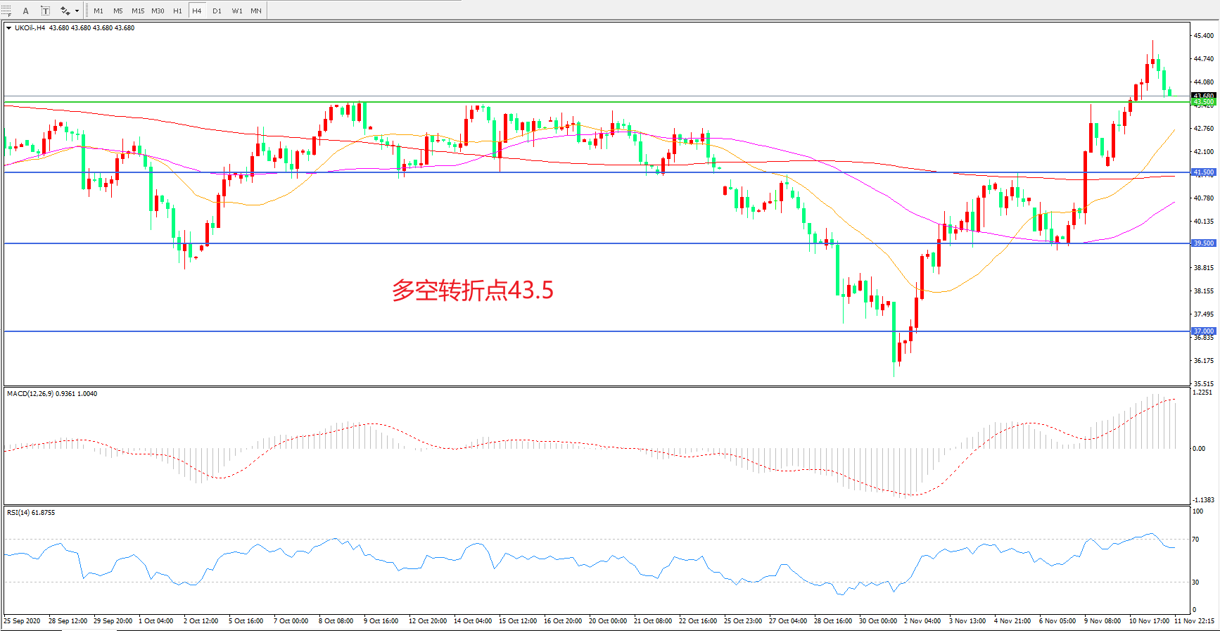 多空转折点:43.50