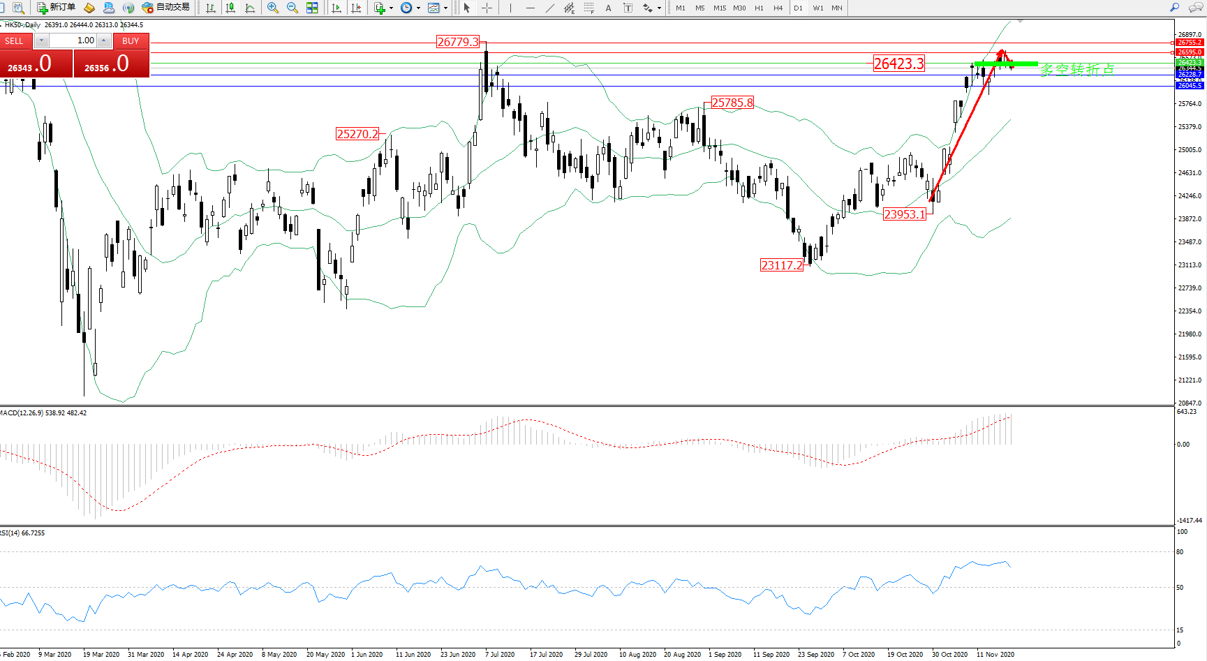 香港恒生指数11月19日(周四)收盘下跌187.32点,跌幅0.71%,报26356.97点;港股主要指数全天表现低迷,恒生科技指数跌0.86%。银行、保险、石油股等权重表现弱势,大型科技股普遍下跌,腾讯、京东、美团均跌超2%,网易跌1.3%,惟小米劲升5%;今日南下资金净流入26.57亿港元,大市成交额为1319.37亿港元。港交所宣布,将分别于今年11月23日(下周一)及明年1月18日推出恒生科技指数期货及期权合约。有关计划将待监管机构及市场准备情况而定。新产品首6个月将有交易费折扣及豁免证监会征费。恒生科技指数期货及期权分别是相关指数首只在交易所上市的衍生产品,并与港交所旗舰的恒生指数及恒生中国企业指数产品互补。恒生科指期货及期权的合约月份为即月、下一个历月及其后两个季月,每点相当于50港元,最低价格波幅为1个指数点。