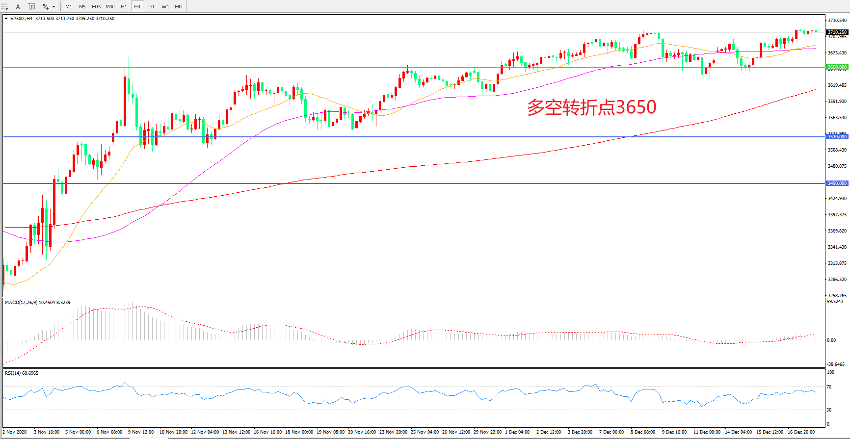 周四(12月17日),美国初请失业金人数意外不降反增,较上上周环比增加2.3万,失业数据打击下,美元指数进一步下挫,逾两年半来首次跌穿90.00关口,标普500延续上行走势,收报3712.75点。大型科技股涨跌不一,奈飞涨超1%,苹果涨0.7%, Facebook跌逾0.4%。