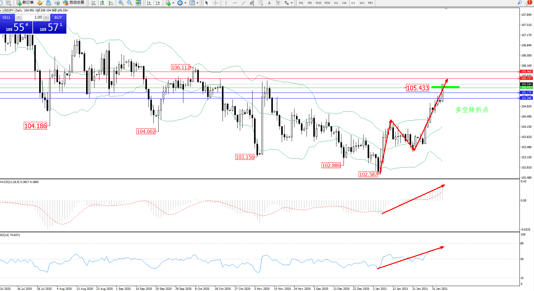 美元兑日元也上涨0.49%,升至105.54,为11月11日以来最高。多种因素共同推动美元兑日元连续第七天获得上涨动力,并进一步突破了关键的105.00心理关口。美国债券收益率的上涨支撑了美元,并助长了持续看涨的势头。在对美国大规模财政刺激措施的强烈预期中,美国债券市场反应强烈。反过来,这继续支撑着美元,并被视为推动美元兑日元汇率走高的关键因素。民主党人在没有共和党支持的情况下迈出了第一步,推进了拜登总统提出的新冠救济计划。参议院开始就冠状病毒支出辩论,虽然尚不清楚共和党愿意做出多少妥协,但投资者仍然希望至少有1万亿美元的额外支出。美国ISM服务业报告中的就业分项显示,前一个月就业人数显着增加,并提高了对将于周五发布的官方非农就业人数的期望。除此之外,金融市场的基本看涨情绪打压了避险日元,并进一步提振了美元兑日元汇率。