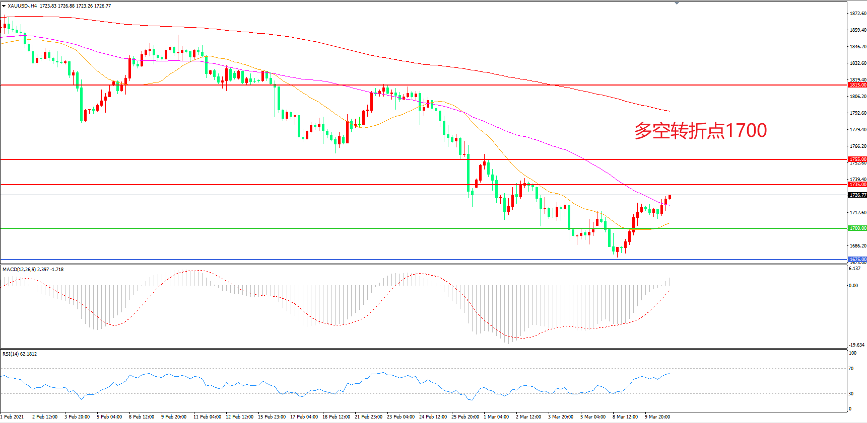 交易策略:在1700.00之上看涨,目标1735.00 1755.00