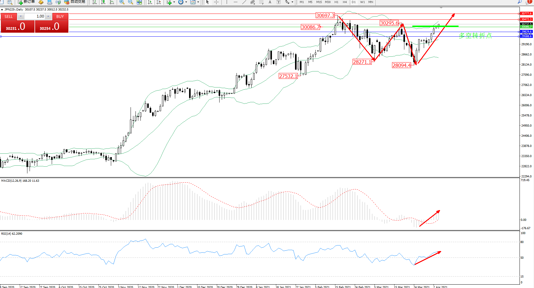 日经225指数4月5日(周一)收盘上涨229.50点,涨幅0.77%,报30083.50点。日本3月服务业活动继续萎缩,企业仍难以完全摆脱新冠疫情大流行的影响;不过萎缩程度为去年1月以来最小。东京及周边府县实施的防疫限制有所放松,使得需求温和复苏。日本3月Jibun银行服务业采购经理人指数(PMI)终值经季调后从2月终值46.3升至48.3,也高于初值的46.5。服务业PMI为连续第14个月低于荣枯分水岭50。最新的PMI数据表明企业活动和新订单均温和下降,前者的降幅为14个月来最小。在日本制造业产出稳健扩张的带动下,3月整体民间部门活动大体企稳。 尽管服务业调查的多数分项依然萎缩,但全都有所改善,未完成业务创去年1月以来最小幅度萎缩。调查中的展望指数以2013年5月以来最快速度扩张。3月综合PMI从2月终值48.2升至49.9。