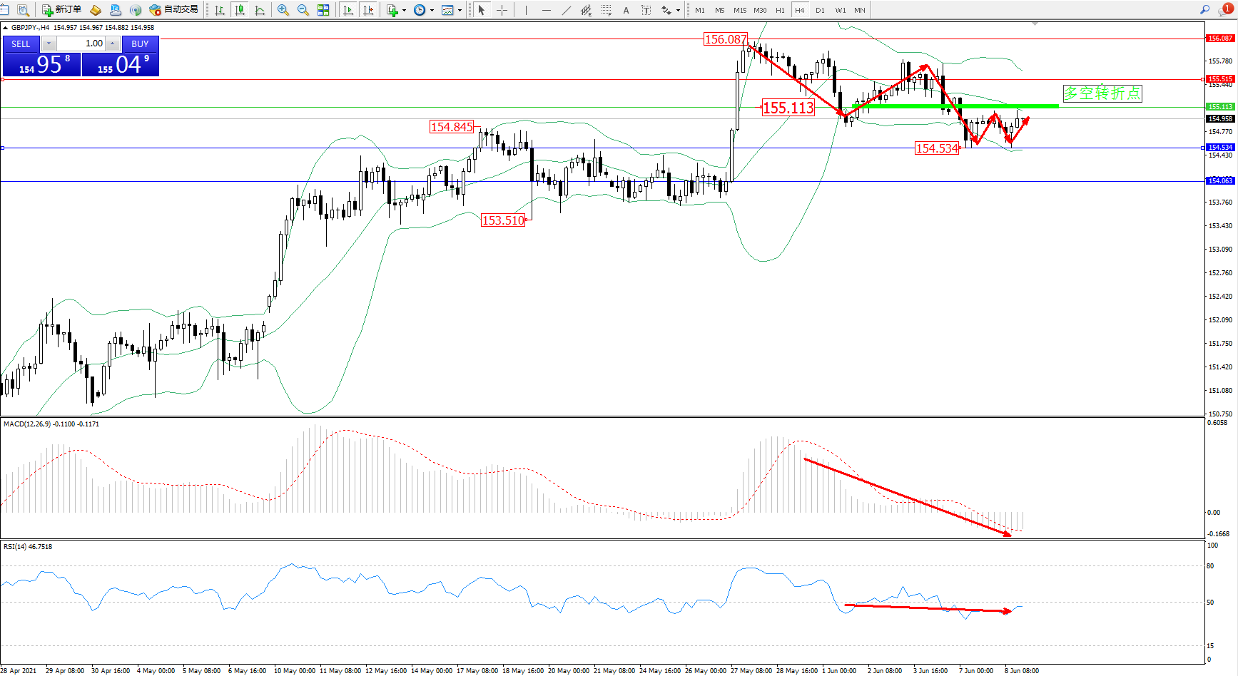 技术点评:高位空头动力延续布林带指标通道内维持窄幅震荡向下移动走势良好,低位抵达154.534位置节点后得到支撑开始整理平移,多头动力有短暂反转向上移动迹象,关注中轨附近节点,布林带指标呈向下移动趋势走势持续,MACD指标处于0轴线下方空头区域弱势整理中,RSI指标处于50均衡线下方持续弱势徘徊中;