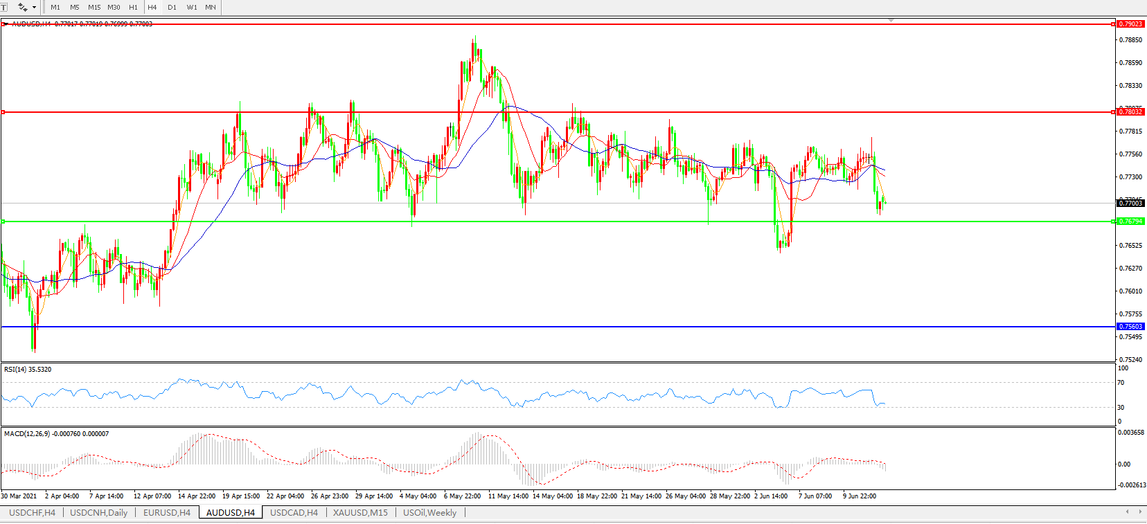 备选策略:0.7680下方看跌,目标0.7560、0.7400