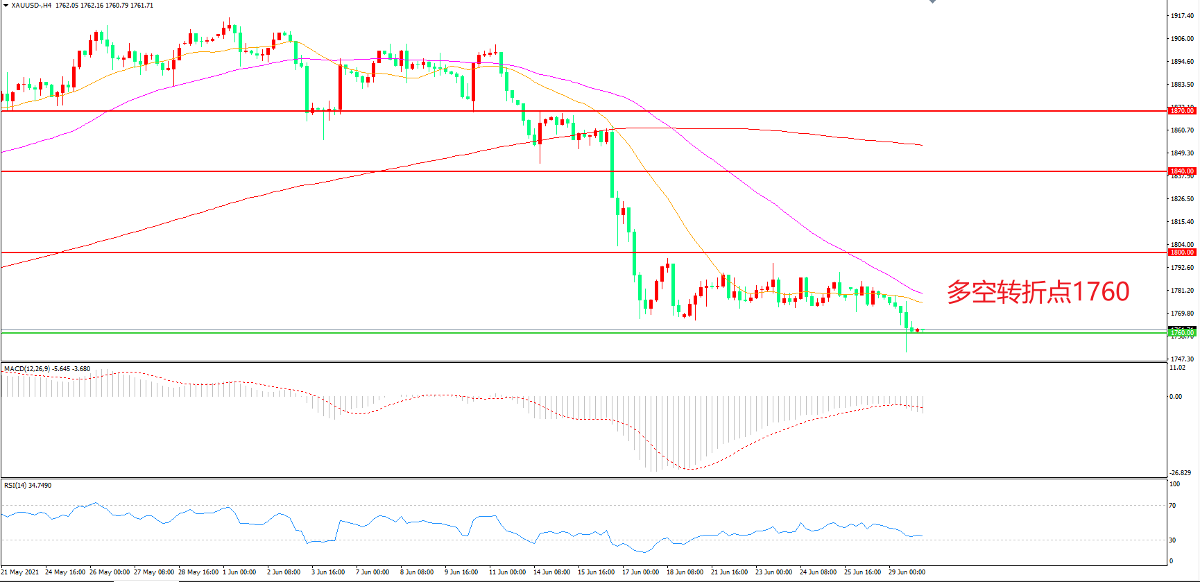 交易策略:在1760.00之下看跌,目标1730.00       1700.00