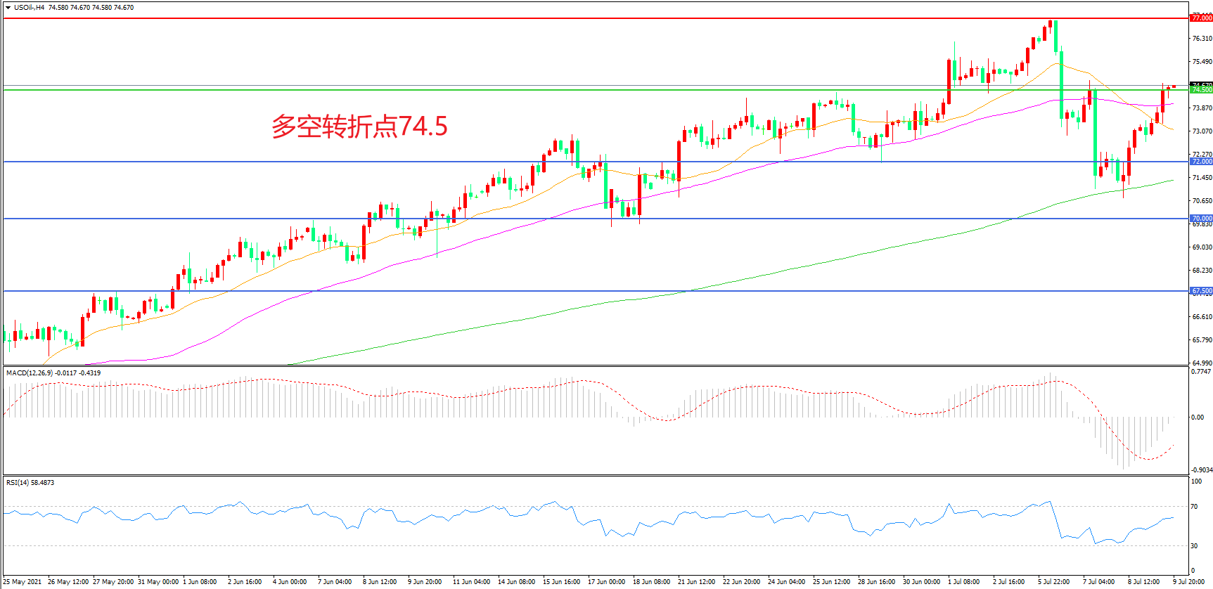 交易策略:在74.50之上看涨,目标77.00              80.00