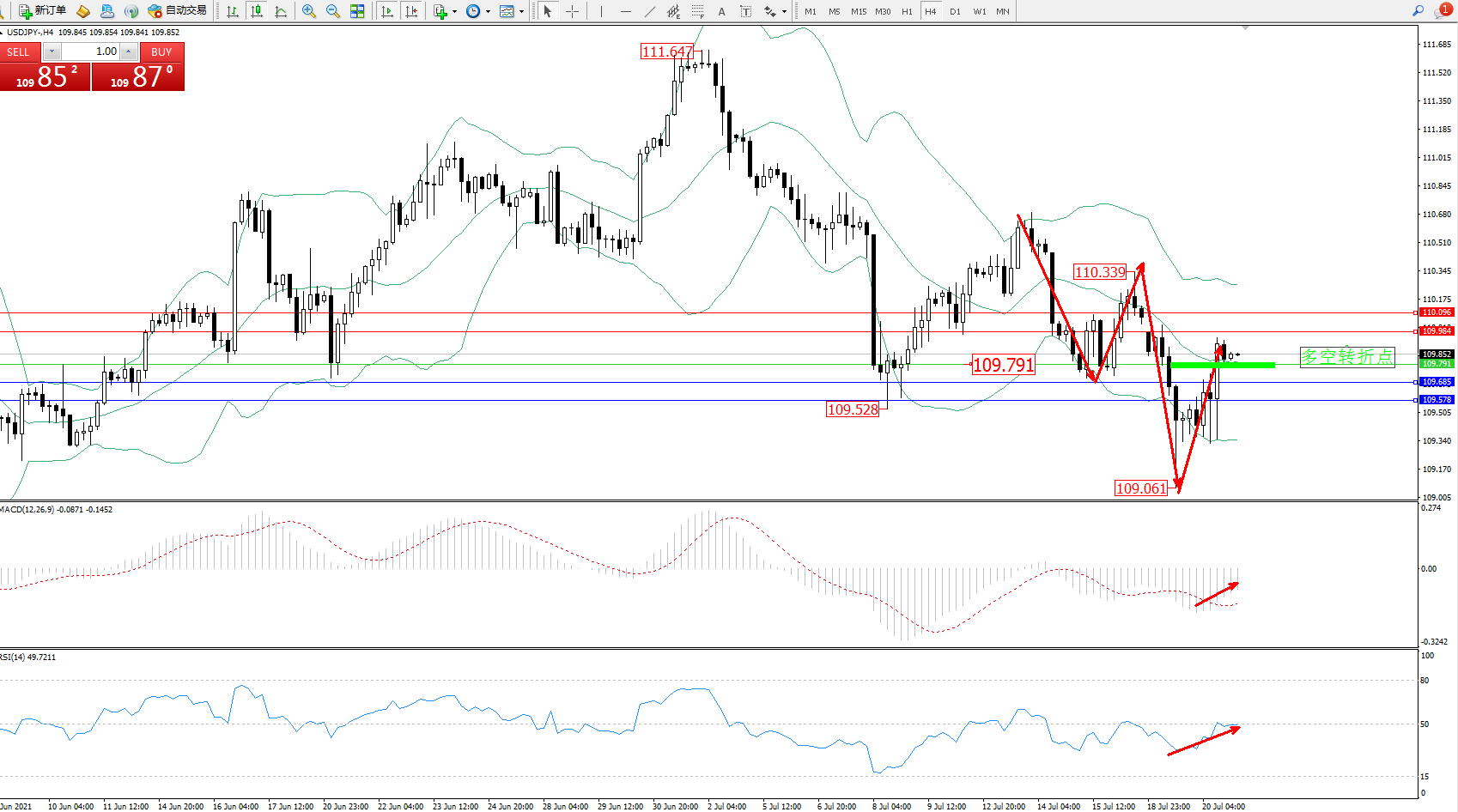 交易策略:109.791上方看涨,目标109.984、110.096