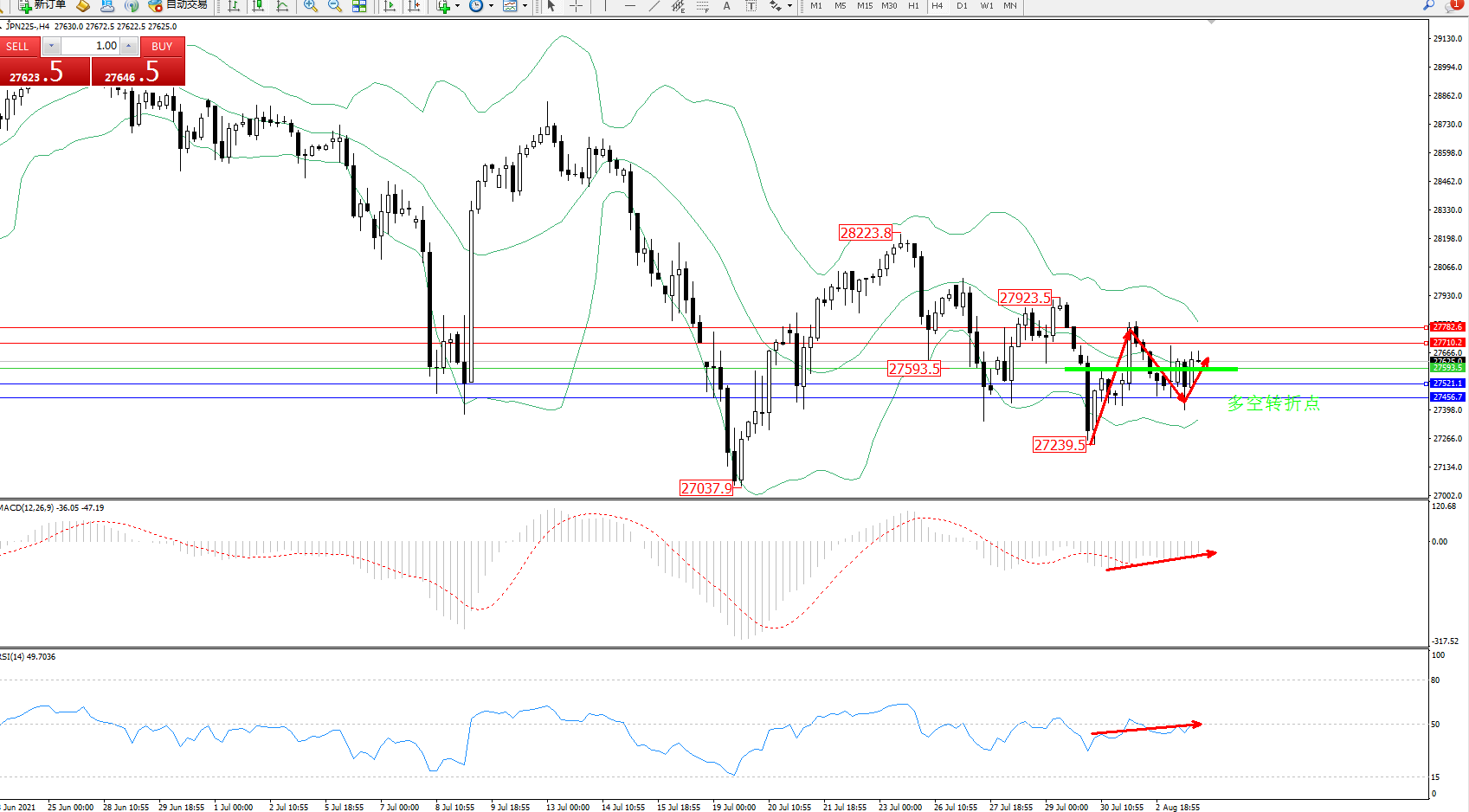 日经指数JPN225——4小时K线图显示: