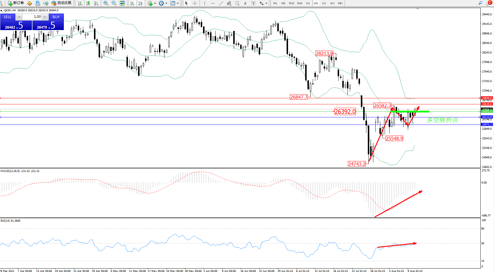 香港恒生指数8月10日(周二)收盘上涨322.22点,涨幅1.23%,报26605.62点;港股主要指数全线收涨,三大指数早盘小幅回落后持续拉升,尾盘涨幅进一步扩大。恒生科技指数涨2.48%报6830点。大型科网股低位爆发,带动大市情绪升温,美团大幅收涨8.44%,腾讯大涨5.33%,网易、快手、阿里巴巴、百度等齐涨;半导体板块继续昨日弱势行情,苹果概念股、蓝筹地产股走弱明显。今日大市成交额为1607亿港元,南下资金净流入66.87亿港元。