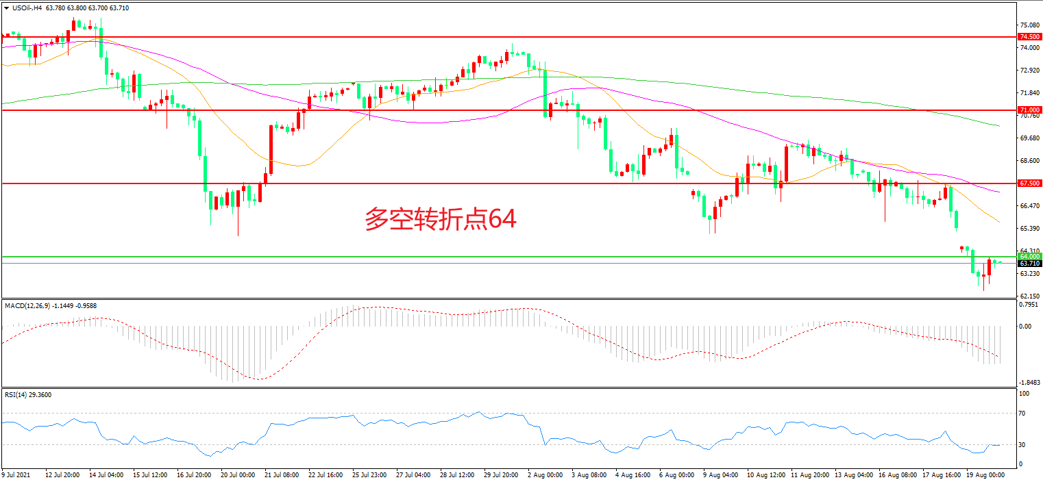 交易策略:在64.00之下看跌,目标60.00 57.00