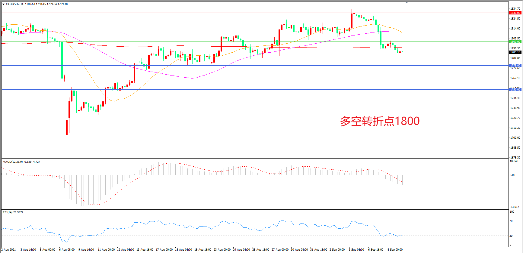 交易策略:在1800.00之下看跌,目标1775.00 1750.00