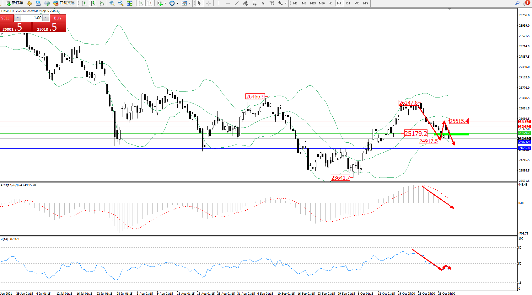 香港恒生指数11月2日(周二)收盘下跌54.65点,跌幅0.22%,报25099.67点;港股高开低走,午后恒指国指均转跌,早盘二者均大涨2%。恒生科技指数涨0.56%报6314点,盘中曾大涨超4%。今日大市成交额为1460亿港元,南下资金净流入20.73亿港元。香港政府统计处公布,香港9月的零售业总销货价值临时估计为280亿港元,按年升7.3%,远逊于市场预期(按年增11.9%)。在2021年9月的零售业总销货价值中,网上销售占8.0%。该月的零售业网上销售价值的临时估计为23亿港元,较2020年同月上升30.5%。2021年8月的零售业网上销售价值的修订估计较二零二零年同月上升17.6%。