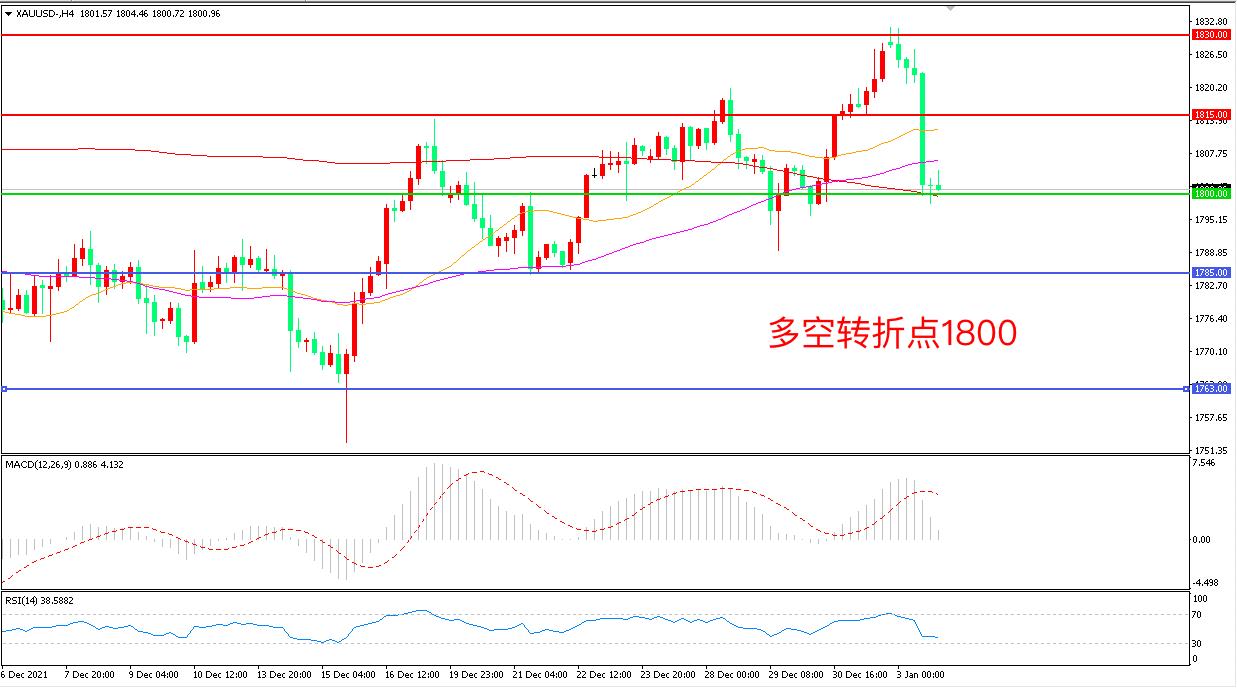 备选策略:在1800.00之下看跌,目标1785.00       1763.00
