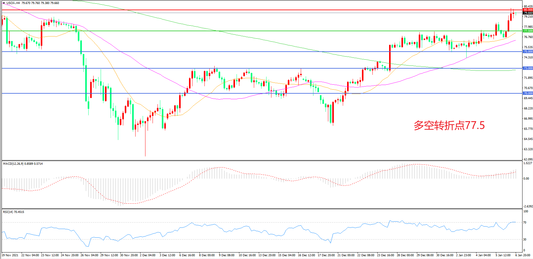 交易策略:在77.50之上看涨,目标80.00 83.00