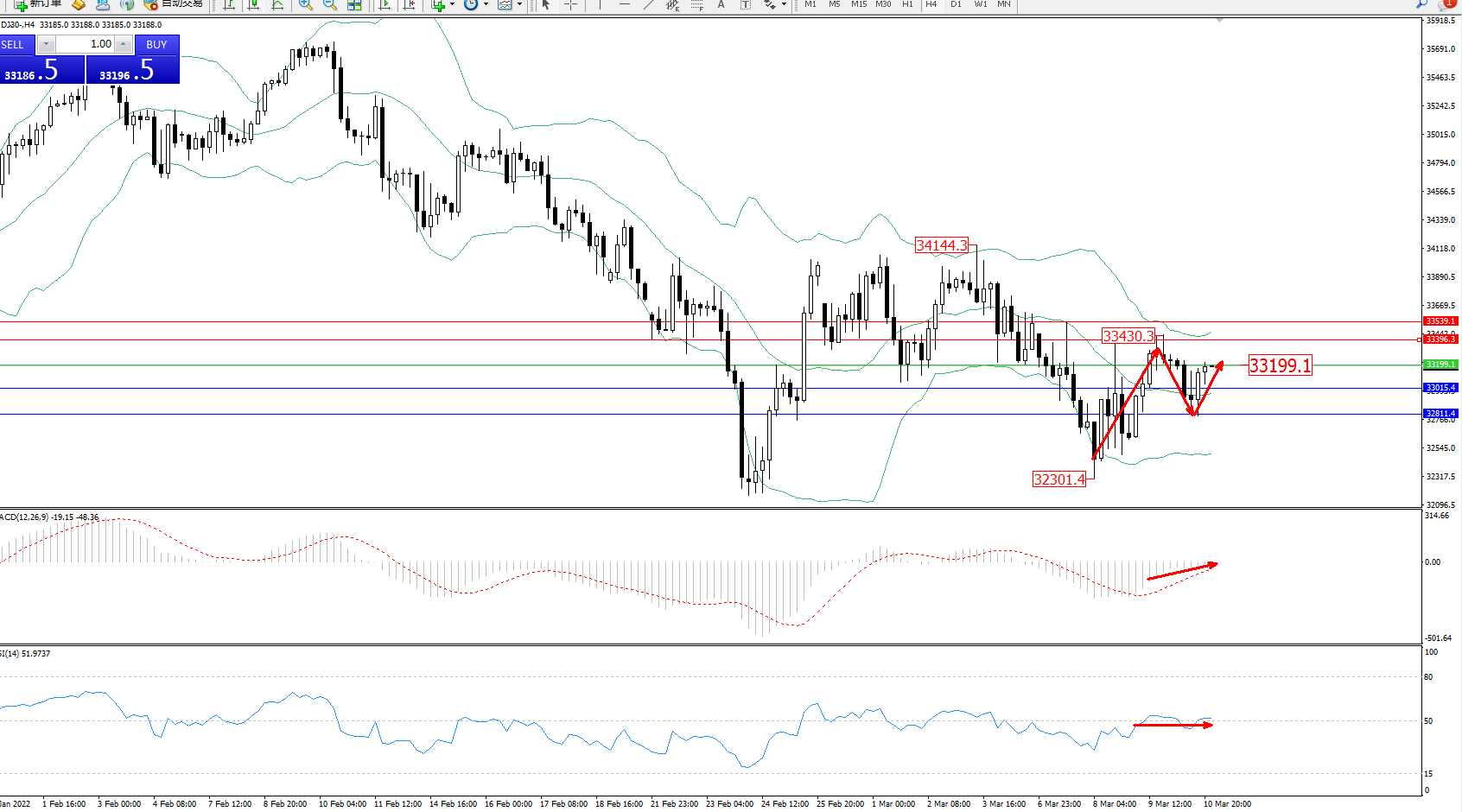 道琼斯指数3月10日(周四)收盘下跌112.24点,跌幅0.34%,报33174.01点;美股尾盘小幅回升,道指震荡,美国公布市场关注的2月CPI数据,结果该数据表现符合预期,且续创40年新高。本次CPI数据对于市场而言尤为重要,这将是美联储3月会议之前所要考虑的最后一份重要经济报告。不过,无论数据表现如何,外界都已普遍预计美联储此次会议将25个基点,这也将是该联储迈出的一系列紧缩举措中的第一步。
