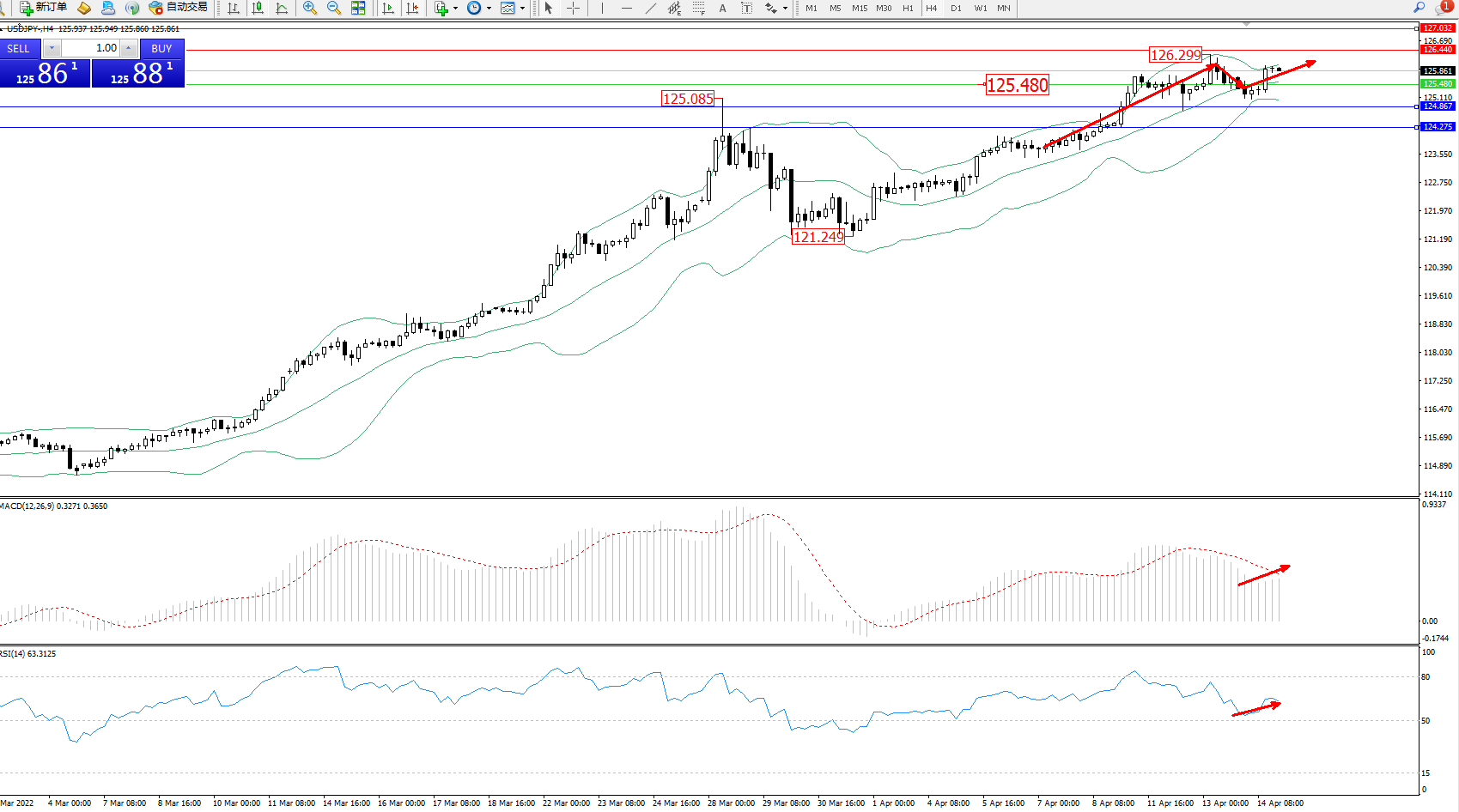 技术点评:多头动力延续布林带指标通道中上轨区间持续震荡上扬,高位抵达126.299附近节点后窄幅震荡平移,短期多头动力有继续向上移动态势,布林带指标呈上行趋势走势态势良好,高位呈收口走势后开始缓慢张口,MACD指标处于多头区域维持窄幅震荡后上移迹象,RSI指标处于多头区域窄幅震荡向上拉升;