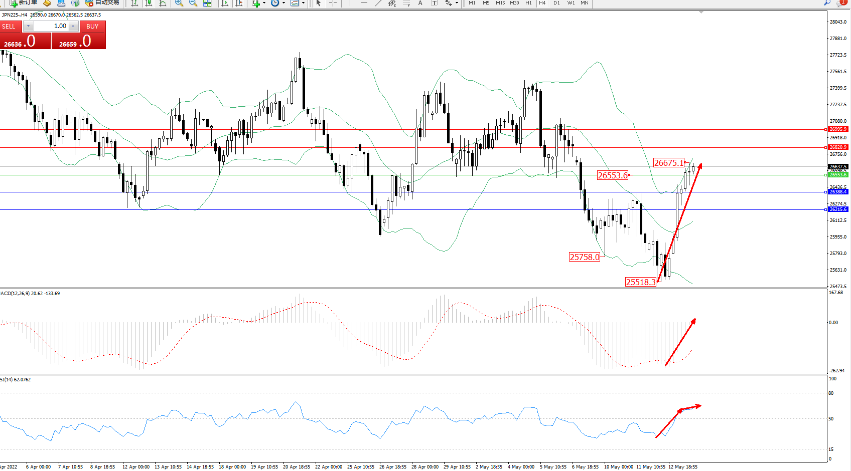 日经指数JPN225——4小时K线图显示: