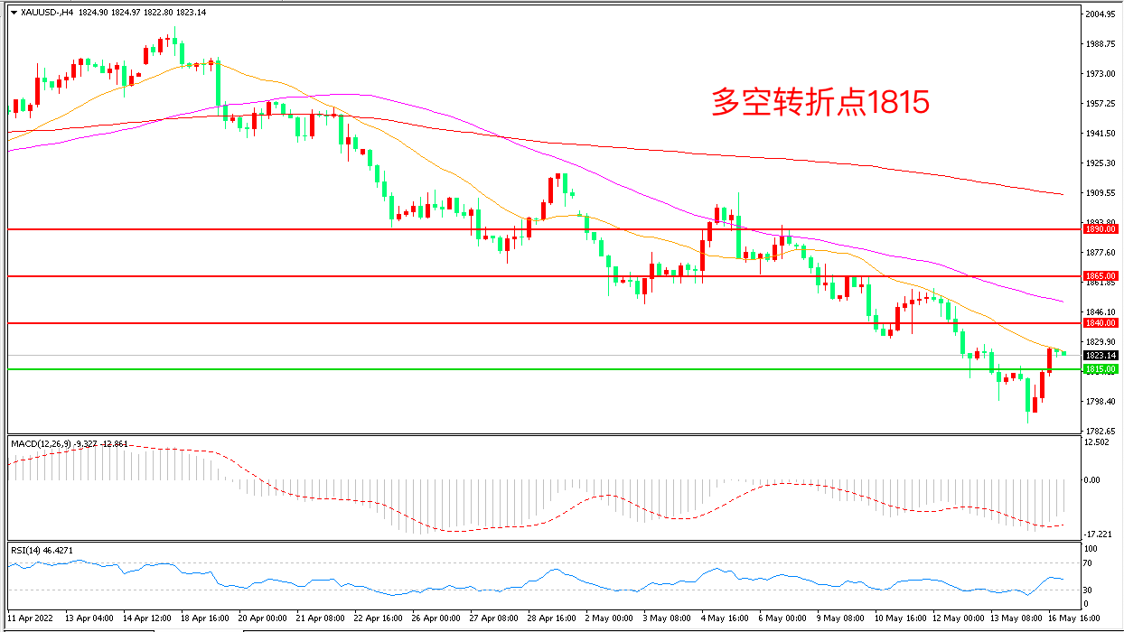 交易策略:在1815.00之下看跌,目标1790.00      1765.00