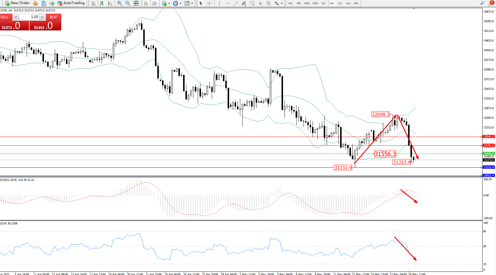 技术点评:低位多头动力短期震荡上扬,延续布林带指标上轨附近持续震荡上扬至32698附近节点后遇阻回撤,延续布林带指标下轨附近节点不断震荡下挫,低位抵达31313附近节点后开始震荡,短期空头动力有继续下行态势,前期低位31151位置近在咫尺,破位在即,布林带指标呈收口走势后开始张口,MACD指标处于0轴线下方维持震荡下挫,RSI指标处于50均衡线下侧维持不断下行中;