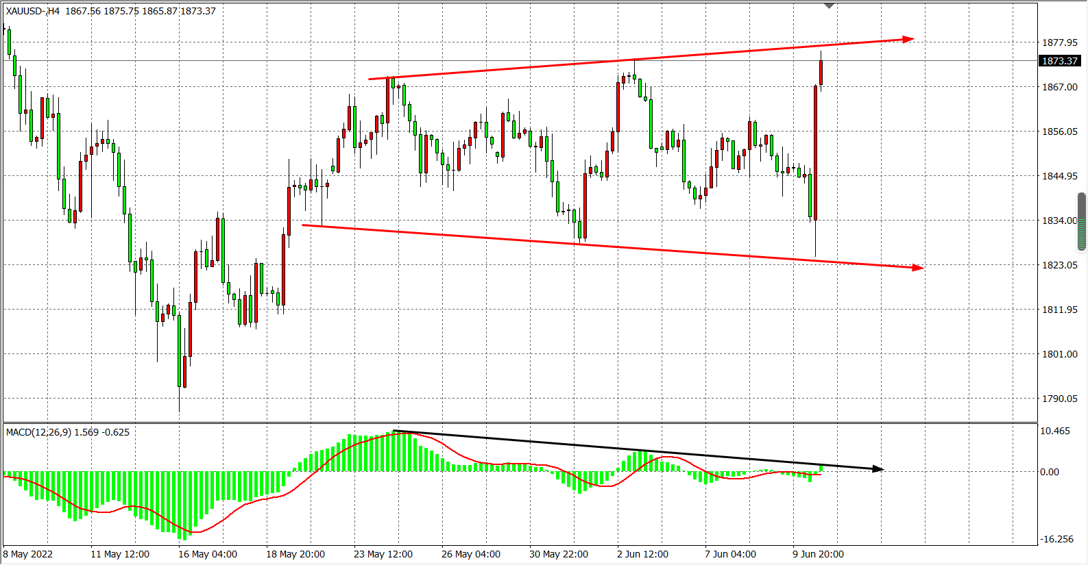 周五(6月10日)公布的最新通胀数据,美国5月CPI同比增长8.6%,再创新高,美联储加息预期升温,而更激进的收水必将加大经济下行压力,后期经济衰退的概率也大大增加。从市场初步的反应来看,虽短期加息预期升温,但长期经济前景回落,美股走低和对经济衰退的担忧支撑了金价走强,于是出现美指和黄金双双拉升的局面。本周四将迎来美联储利率决议,黄金走势仍存较大变数。