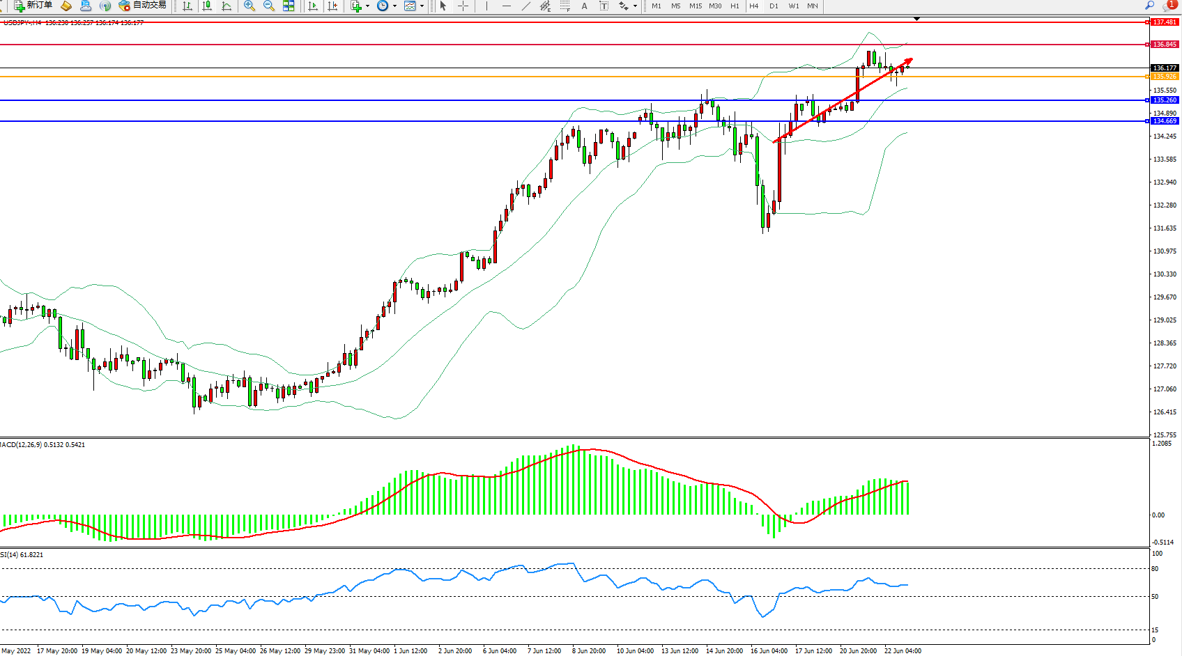 美元兑日圆维持136.153附近震荡,日本央行会议纪要重申了其宽松的政策立场将持续更长时间。预计日本央行拒绝调整货币政策的态度将推动美元兑日元继续走高。